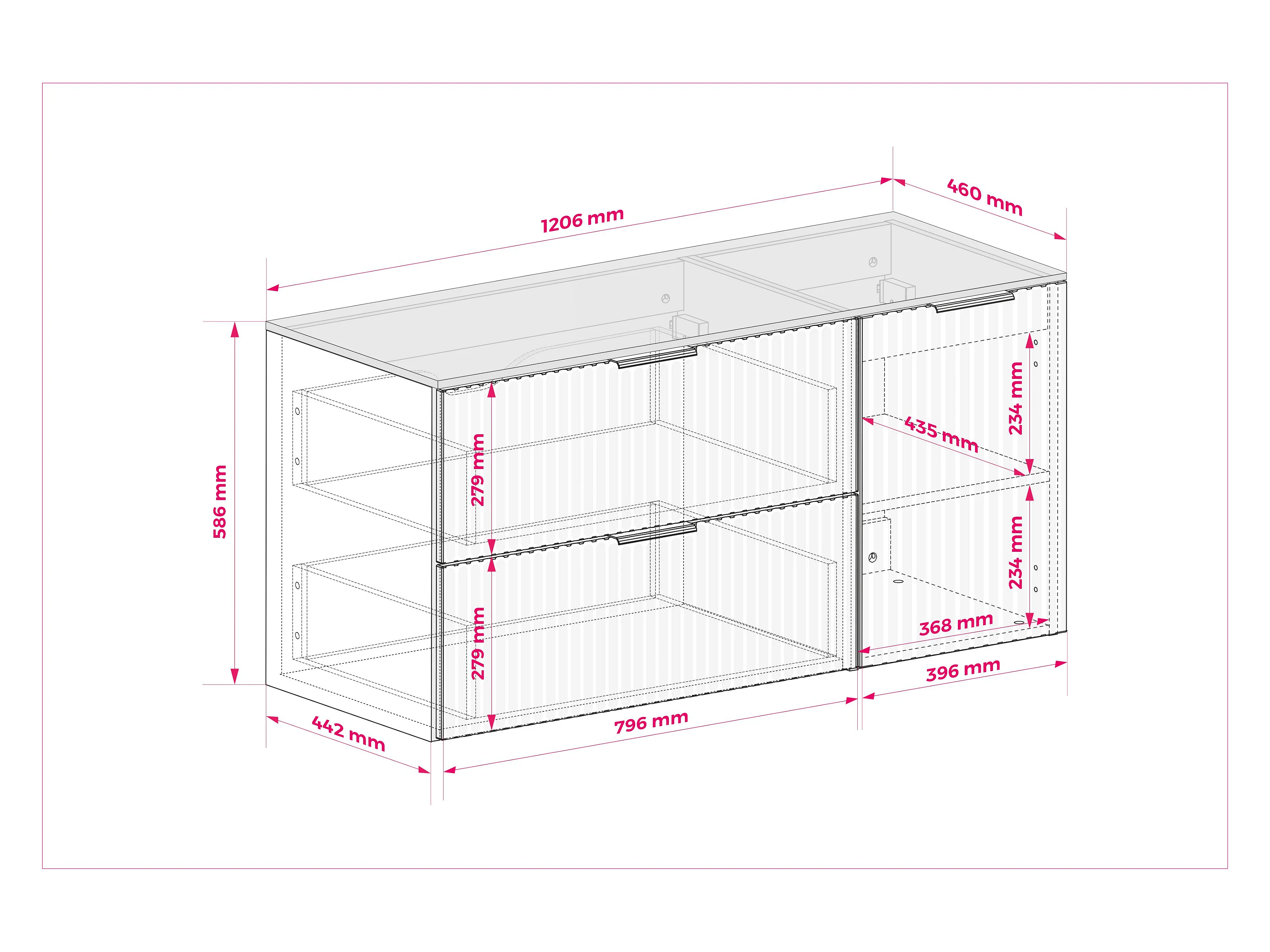 Muebles de baño con LED, conjunto suspendido con lavabo, 2 columnas y armario con espejo, bodega