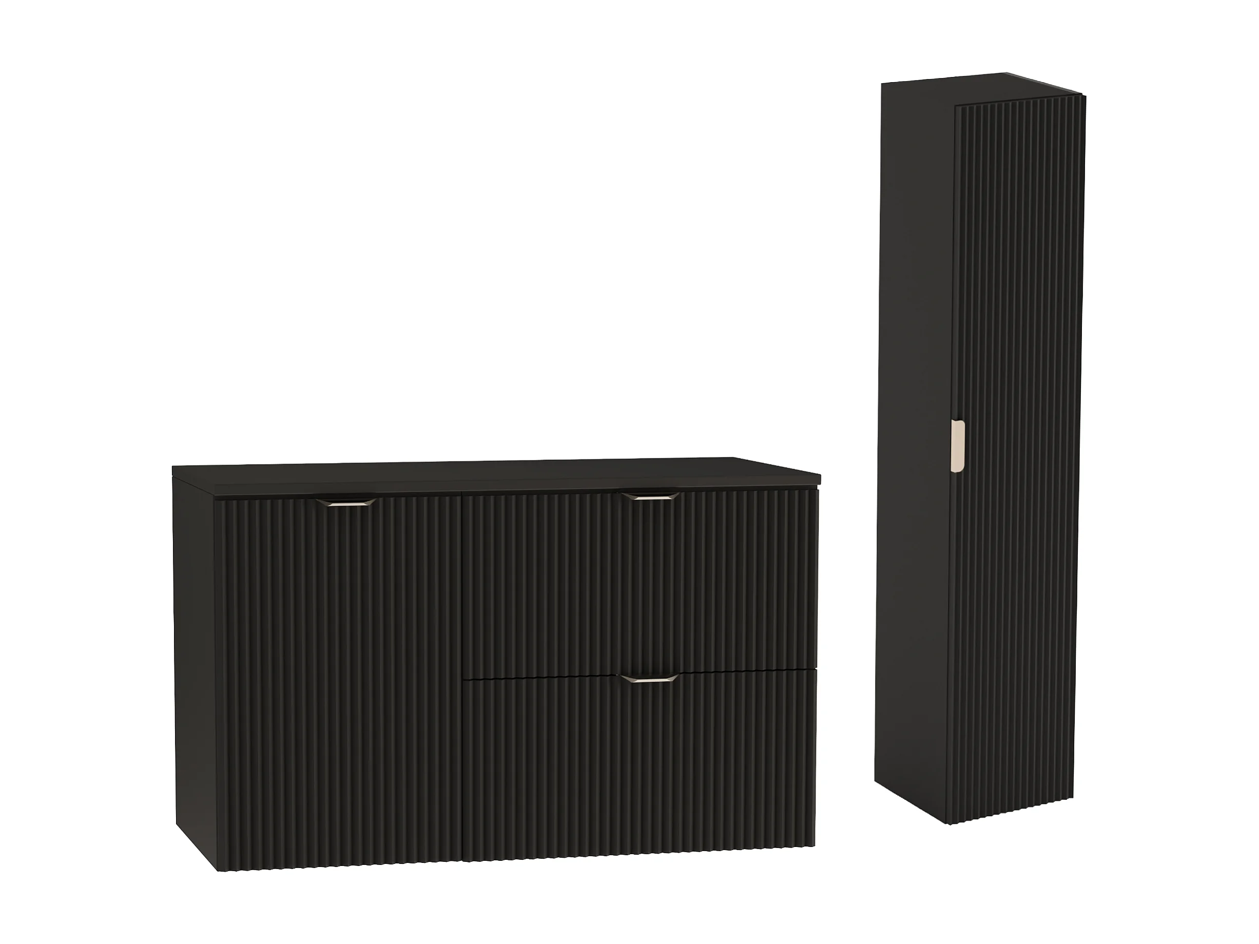 Conjunto de baño negro 100 cm Armario Encimera Negro Armario con cesta Columna Frentes ranurados