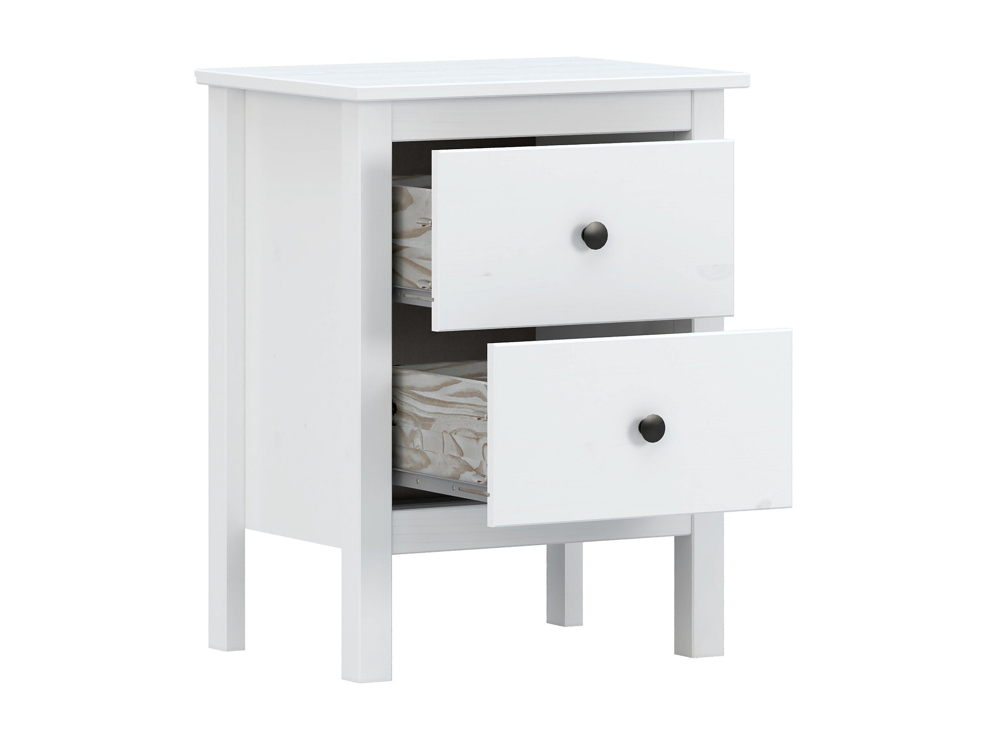 Conjunto de cabecero de 155x45cm y Dos mesitas de Noche de 2 cajones en Madera Maciza en color Blanco