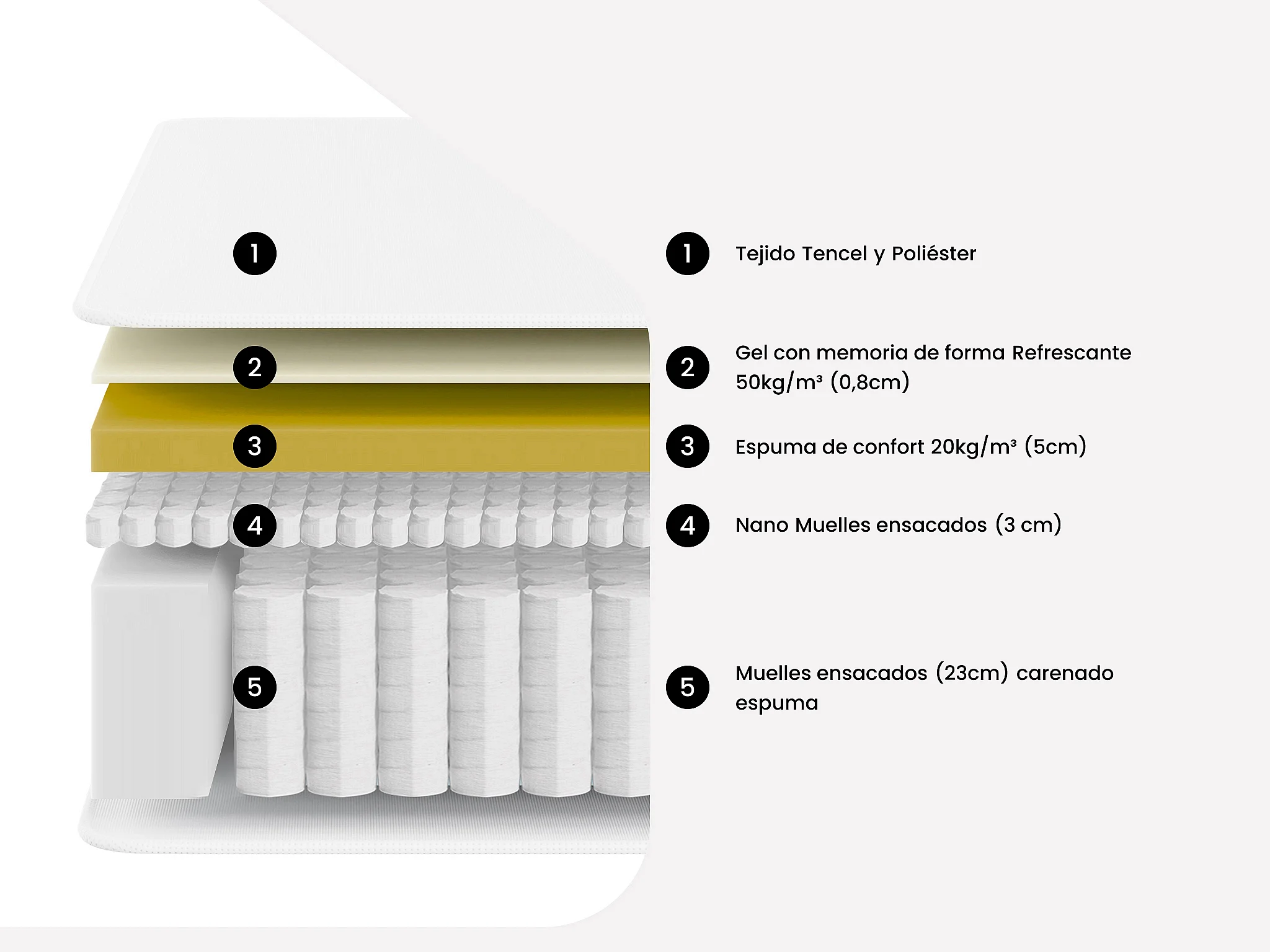 Conjunto de canapé abatible de 160 x 200 cm color natural claro + colchón de muelles ensacados acolchado con nano muelles + espuma viscoelástica de 32 cm de espesor - IPOH de YSMÉE