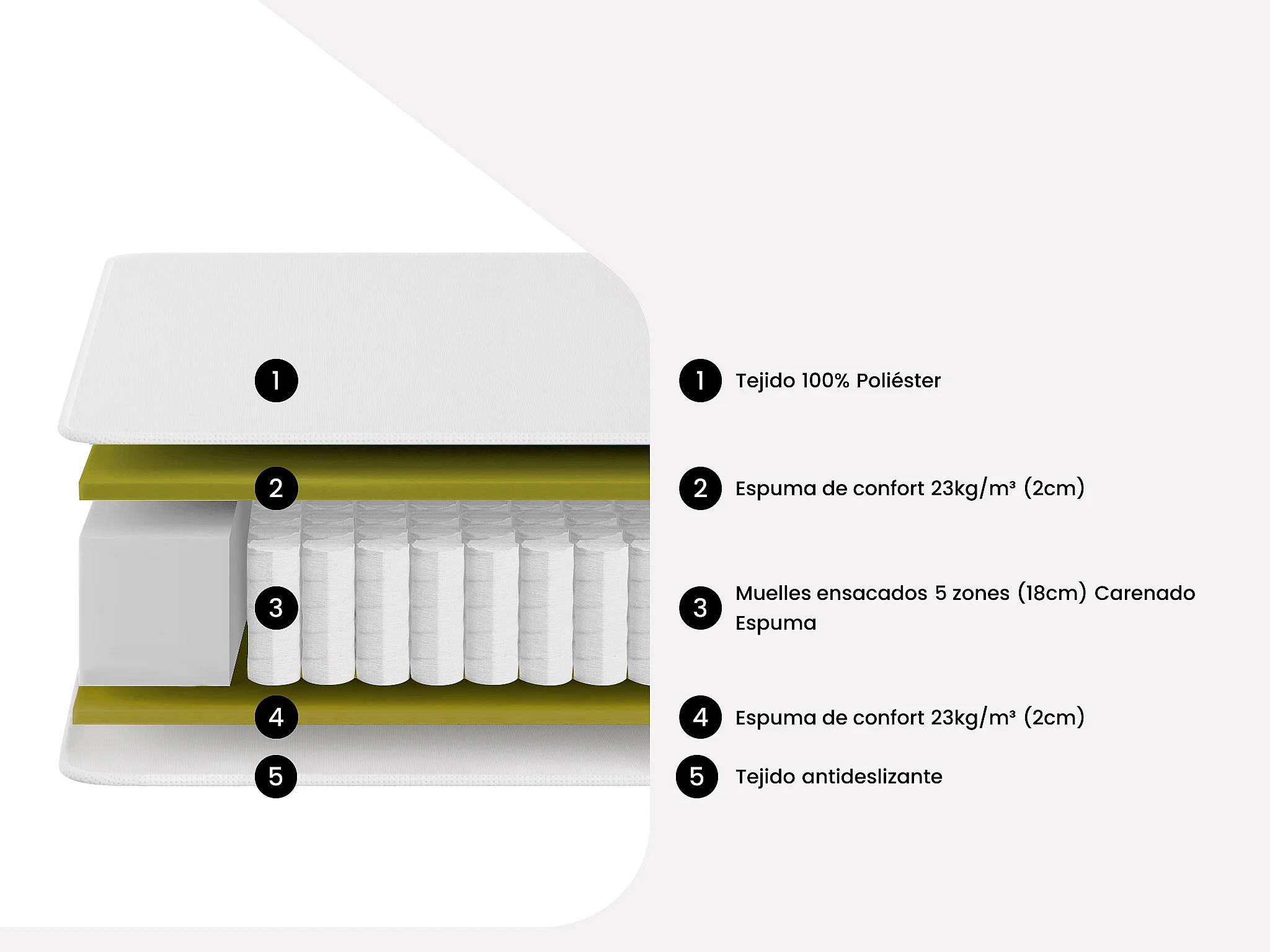 Conjunto de canapé abatible de 180 x 200 cm natural claro + colchón de muelles ensacados 5 zonas ép.21 cm - CIDORA de YSMÉE
