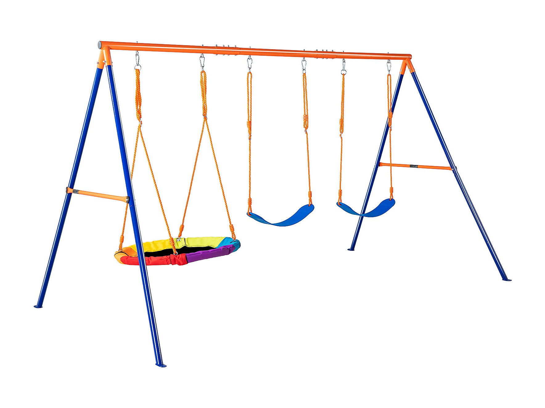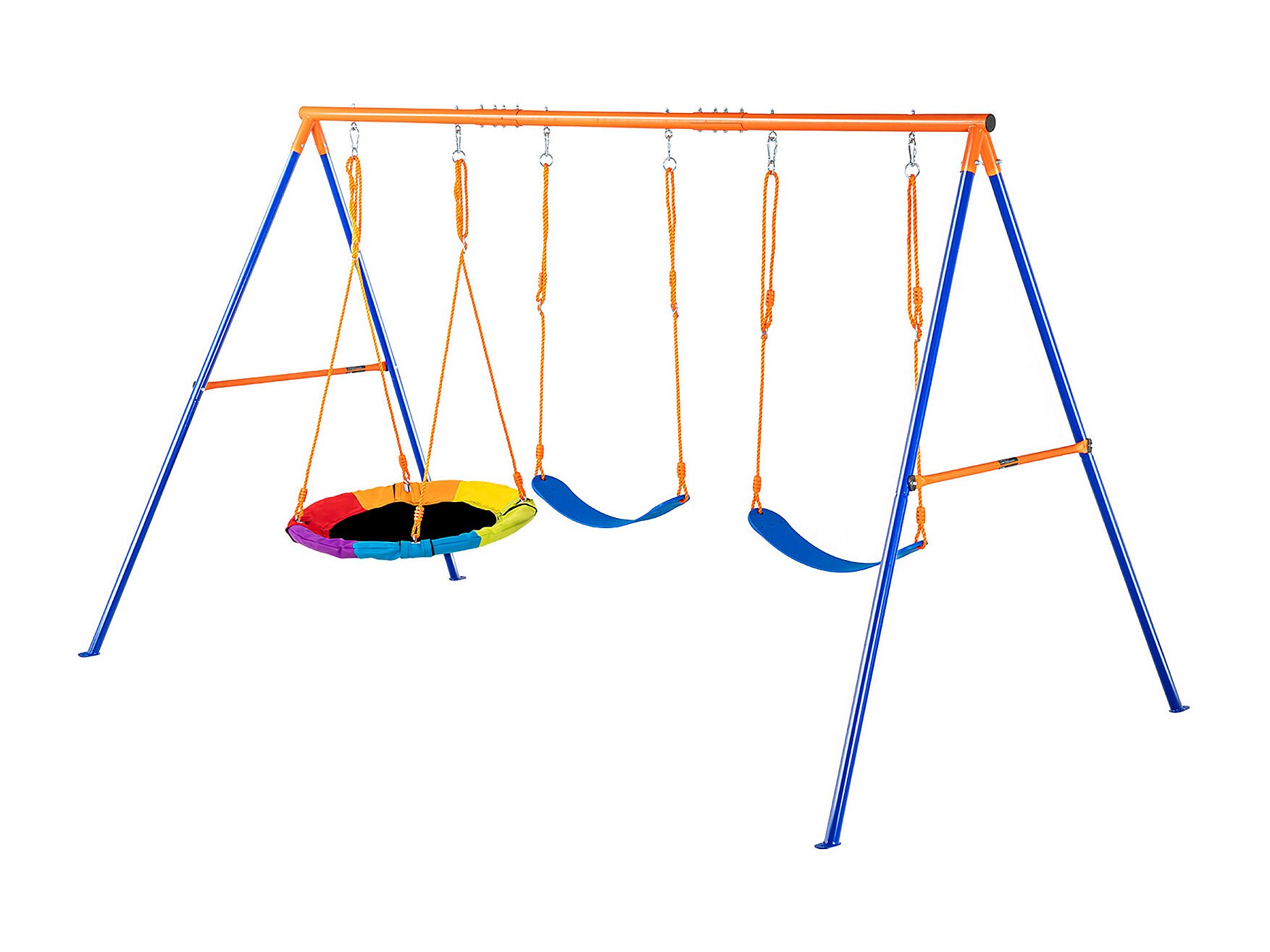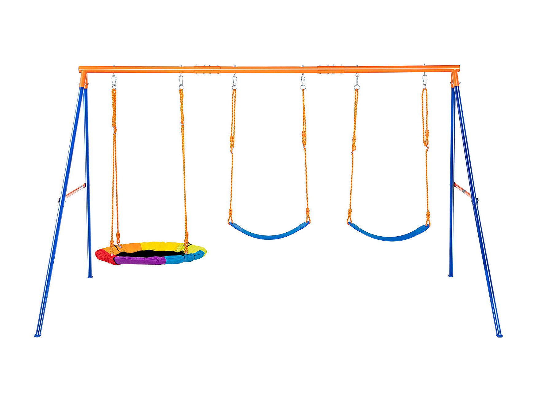 Conjunto de Columpios SucceBuy de Jardín con 1 Asiento 2 Plazas con Cinturón, Soporte Metálico, Cuerda Ajustable para Patio