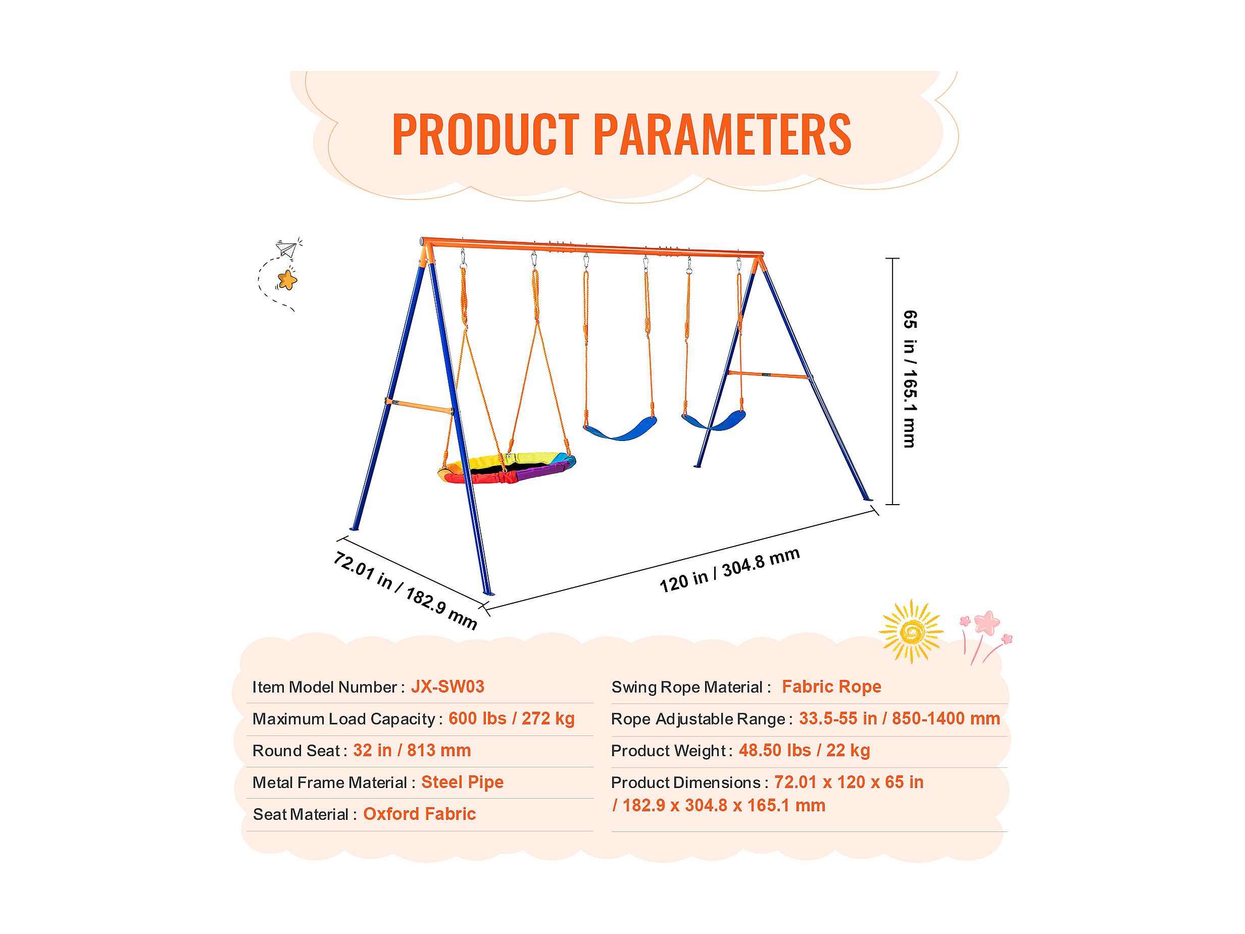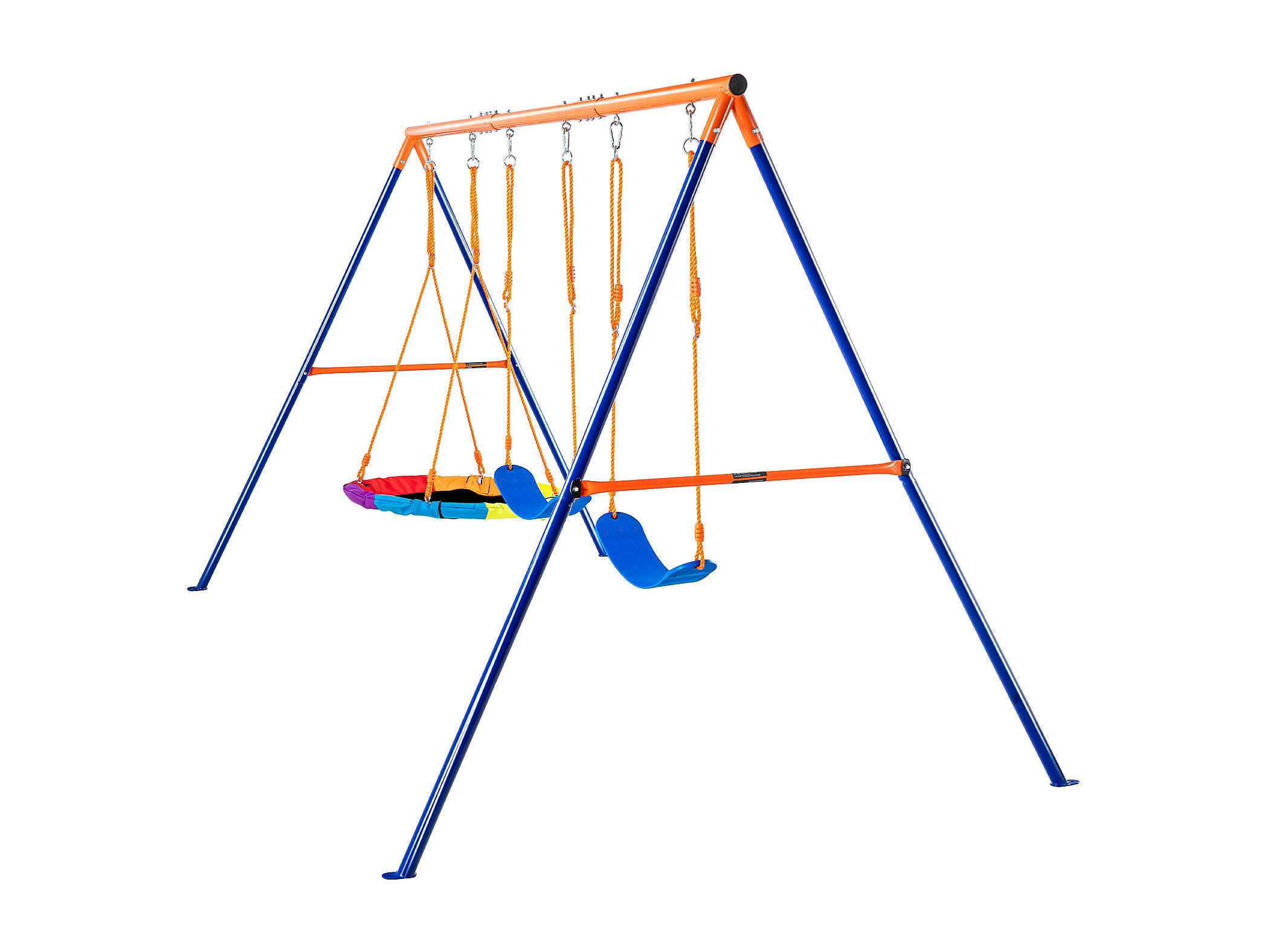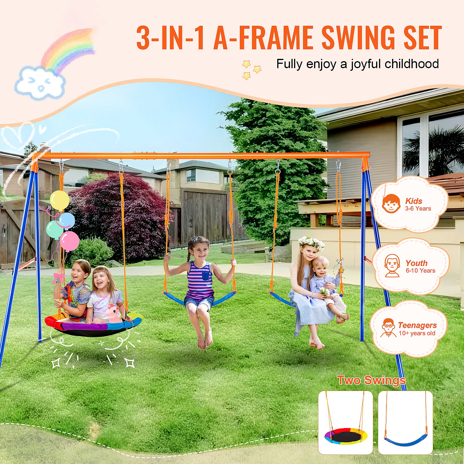 Conjunto de Columpios SucceBuy de Jardín con 1 Asiento 2 Plazas con Cinturón, Soporte Metálico, Cuerda Ajustable para Patio