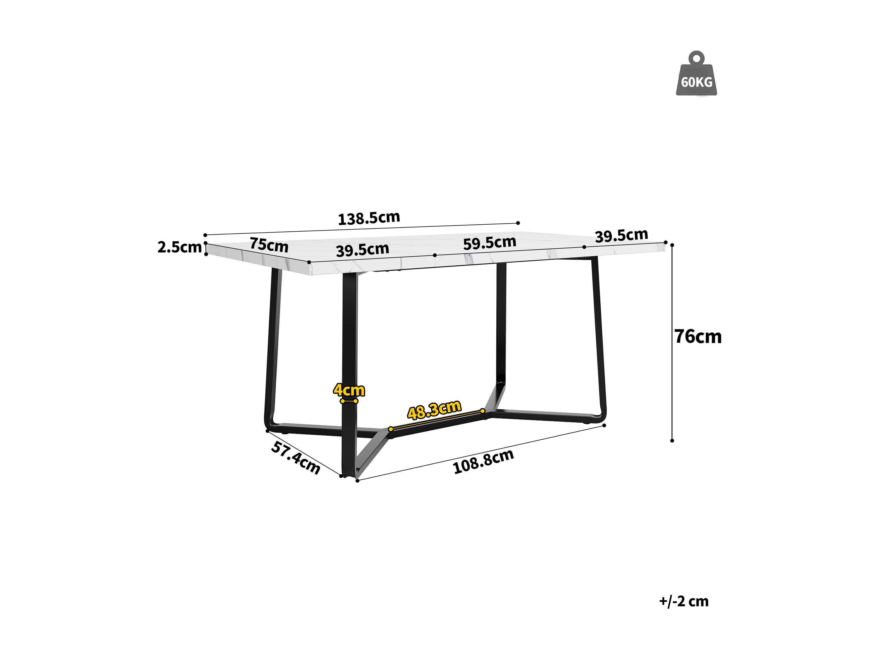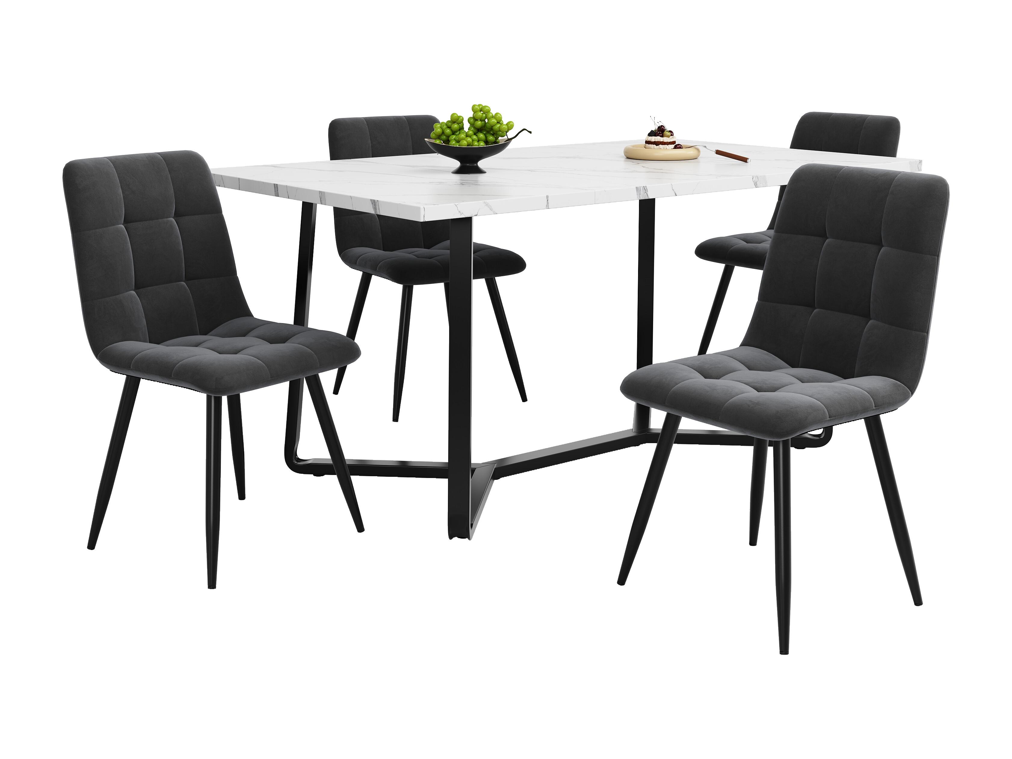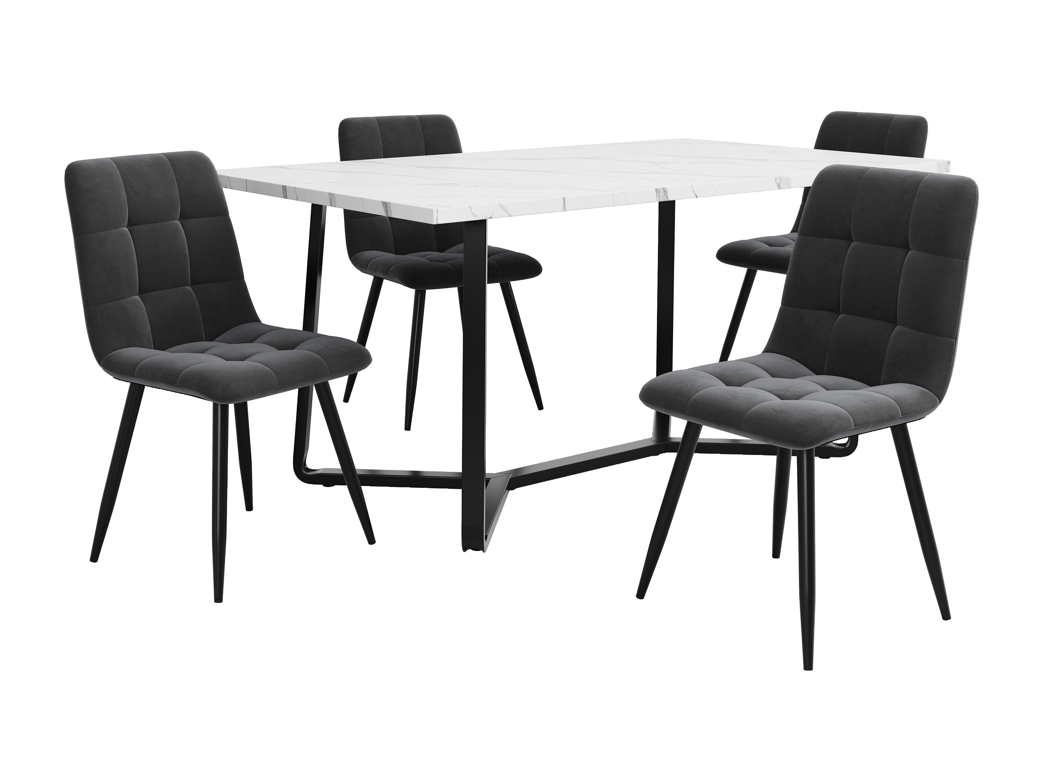 Conjunto de comedor 5 piezas MDF efecto mármol mesa 138 cm + 4 sillas terciopelo gris patas negras