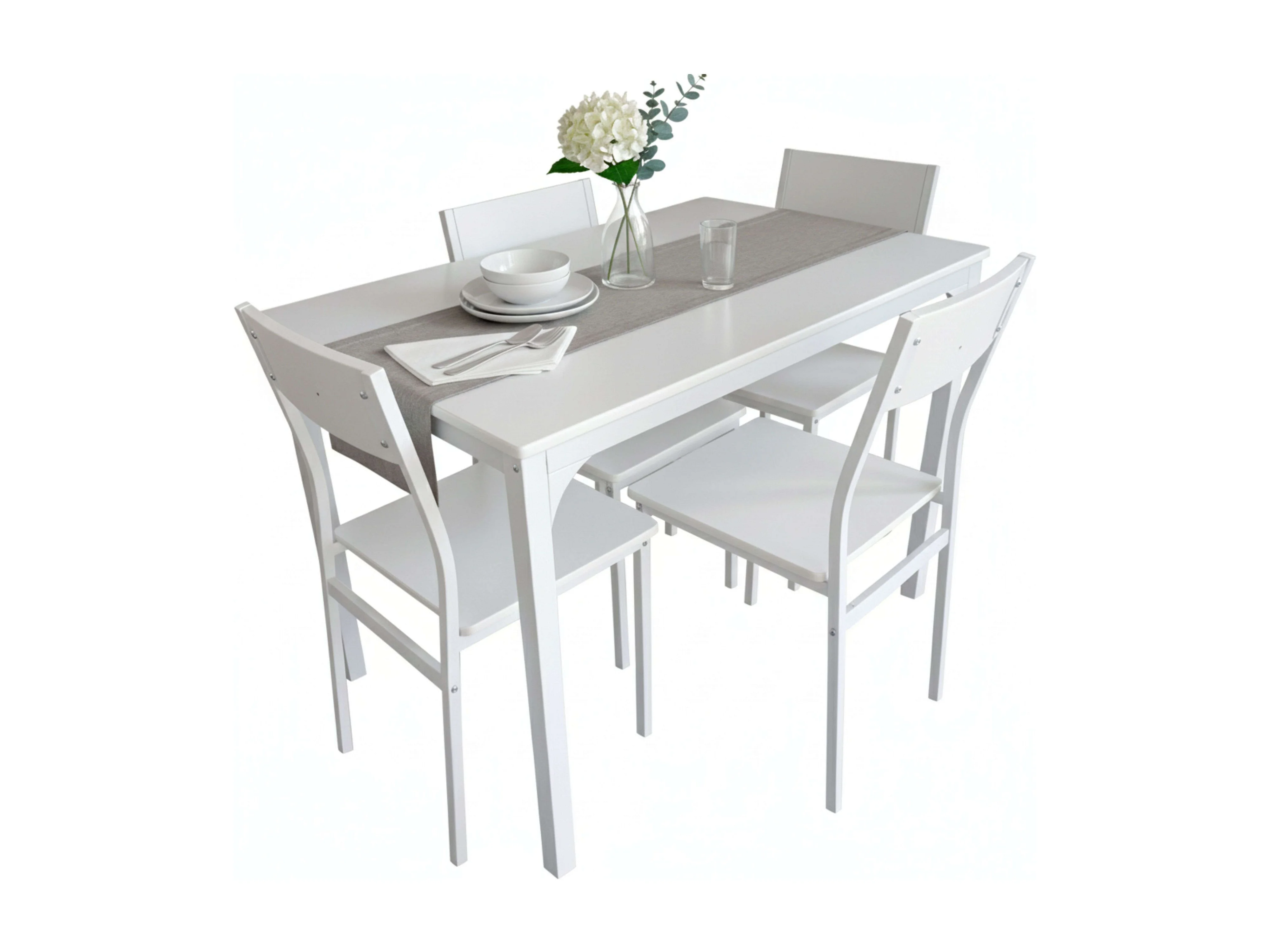 Conjunto de comedor blanco (mesa + 4 sillas) mesa 110x76x70 cm en melamina