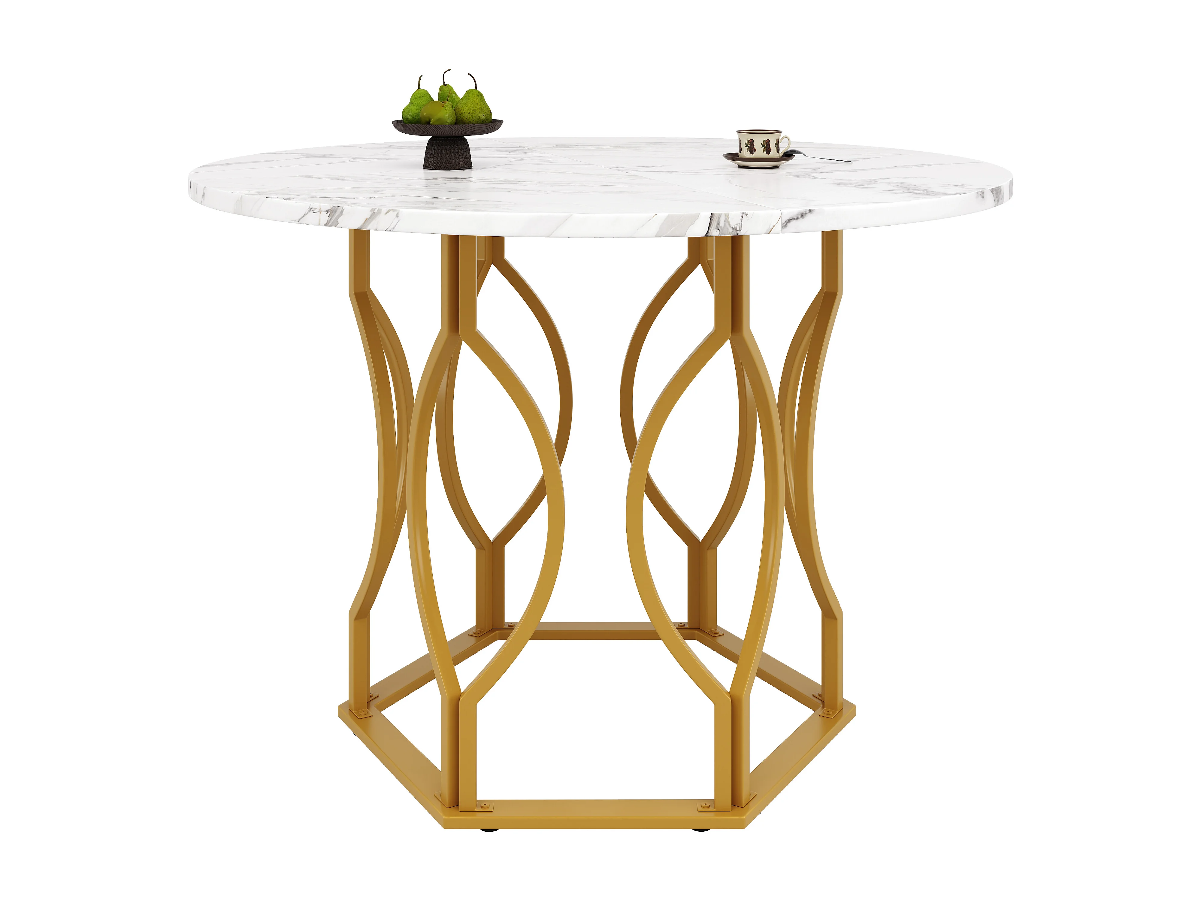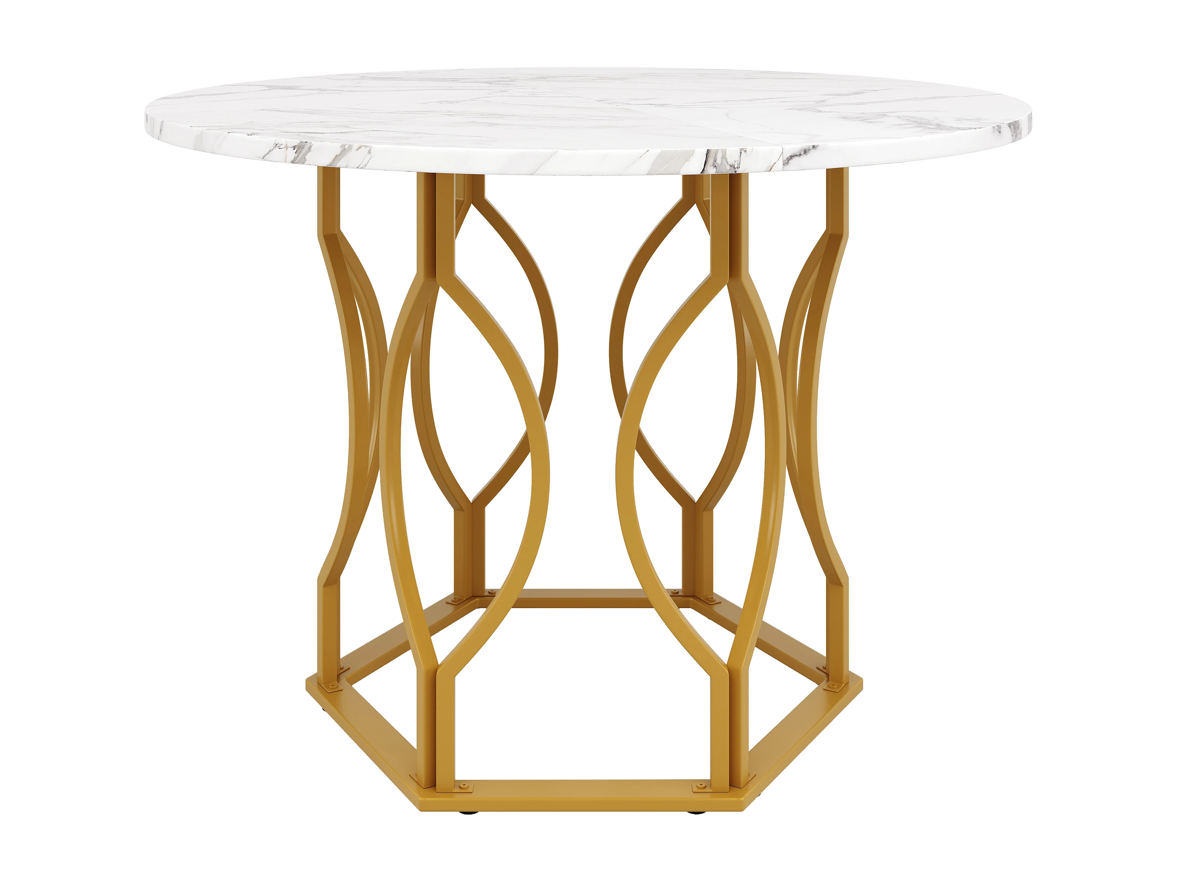 Conjunto de mesa de comedor redonda de 5 piezas con tablero de MDF blanco de 100 cm, patas de metal dorado + 4 sillas de terciopelo verde