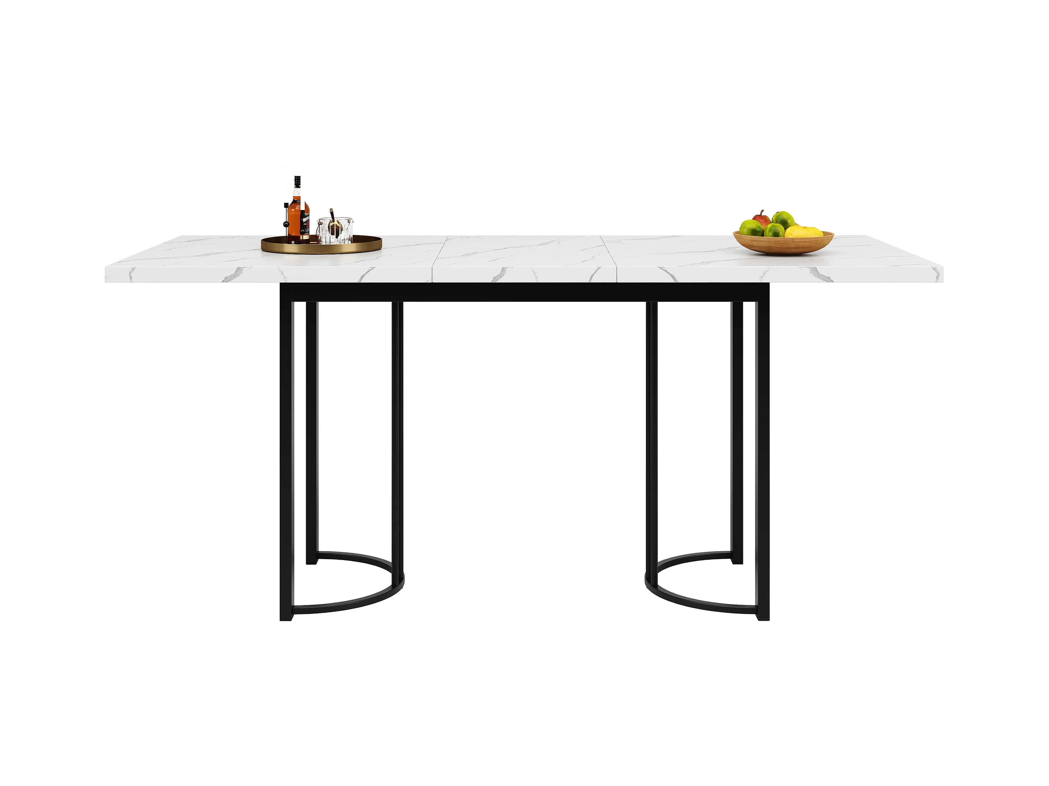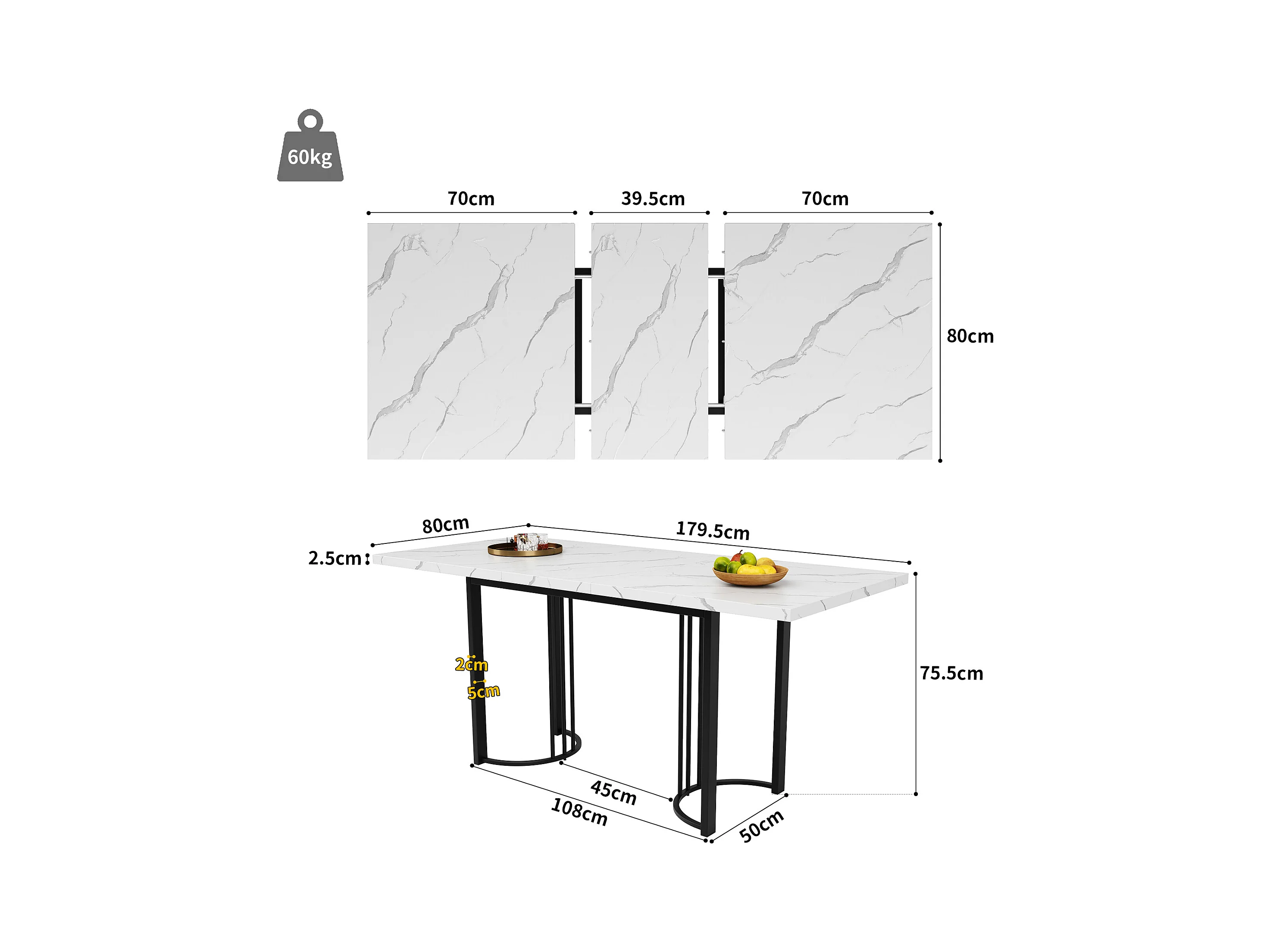 Conjunto de mesa extensible + 8 sillas de terciopelo - 140/179,5 x 80 x 75,5 cm - MDF + Patas de metal - Blanco + negro