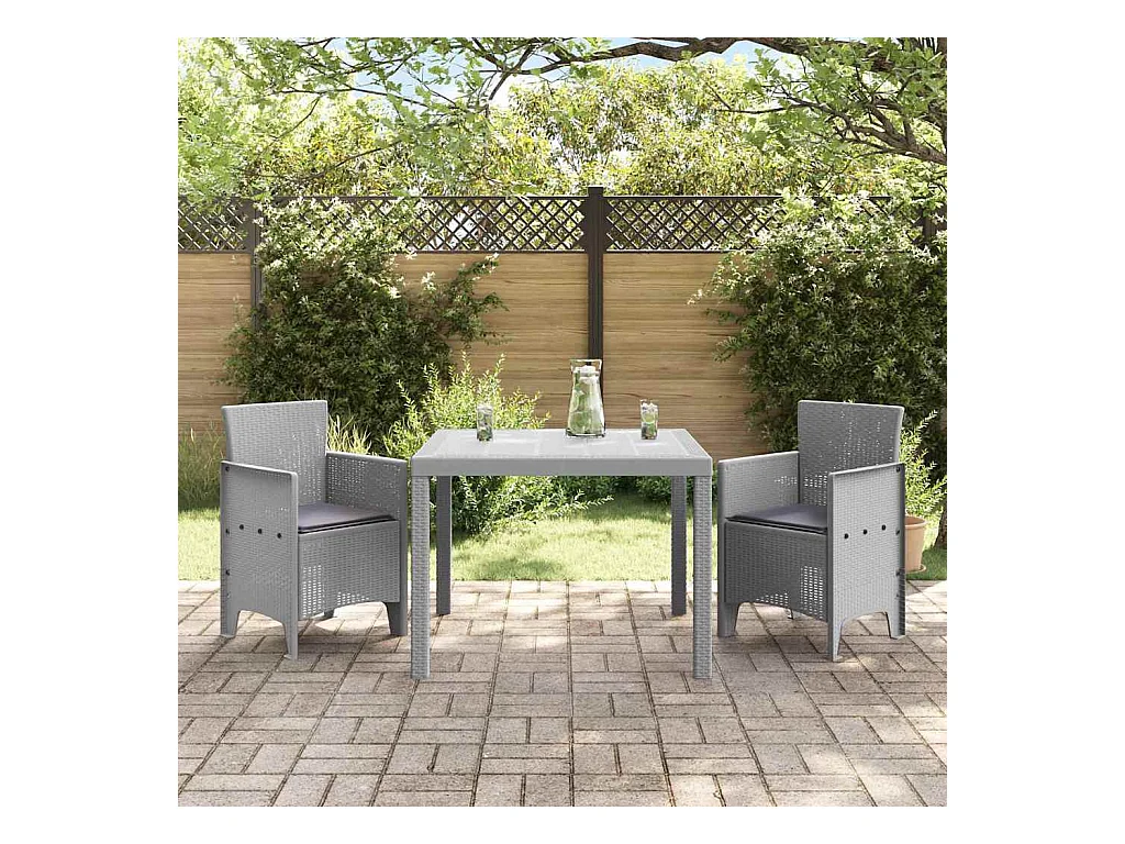 Conjunto de Comedor de Jardín 3 pcs Gris Claro Ratan Polt