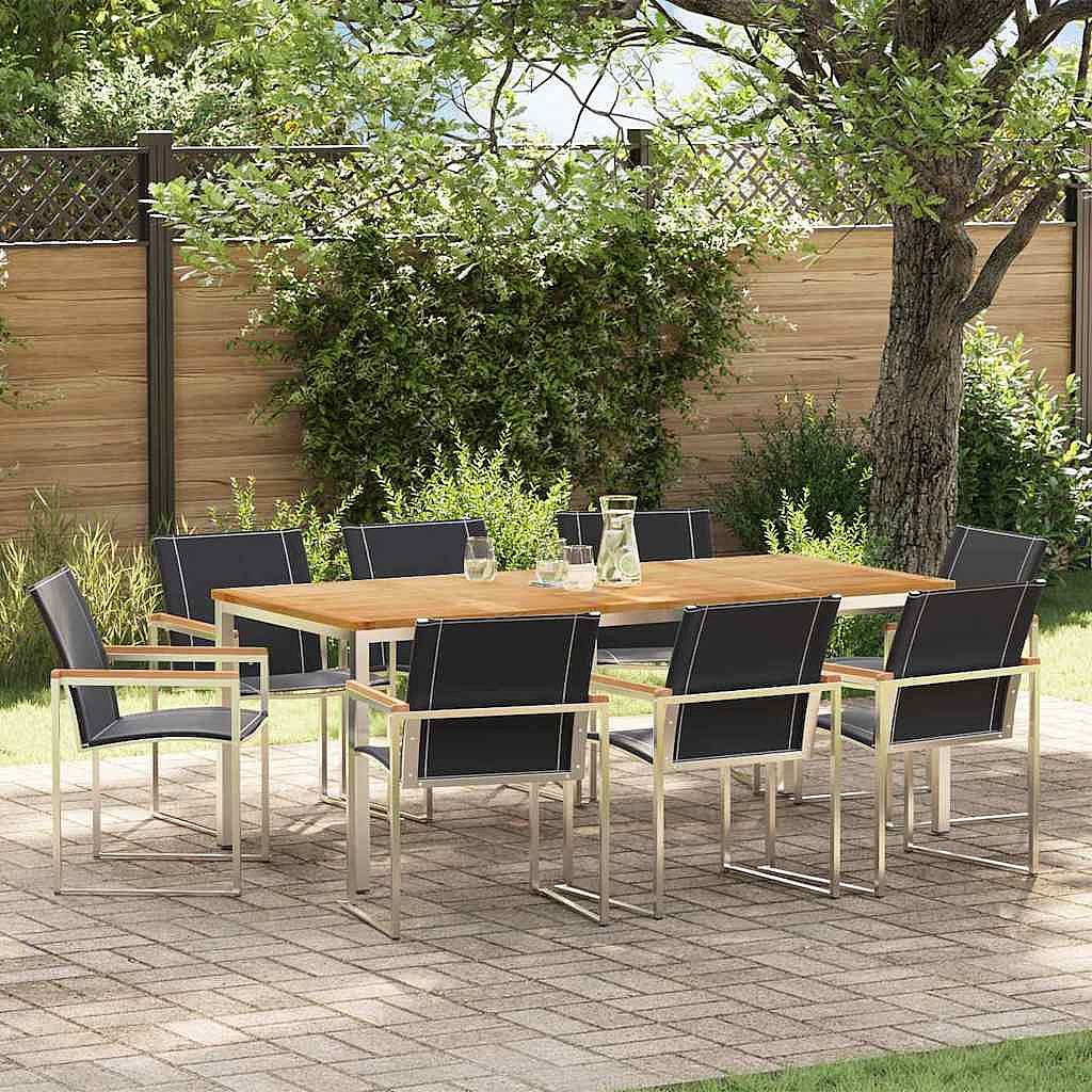 Juego comedor de jardín 9 piezas madera maciza acacia y textileno