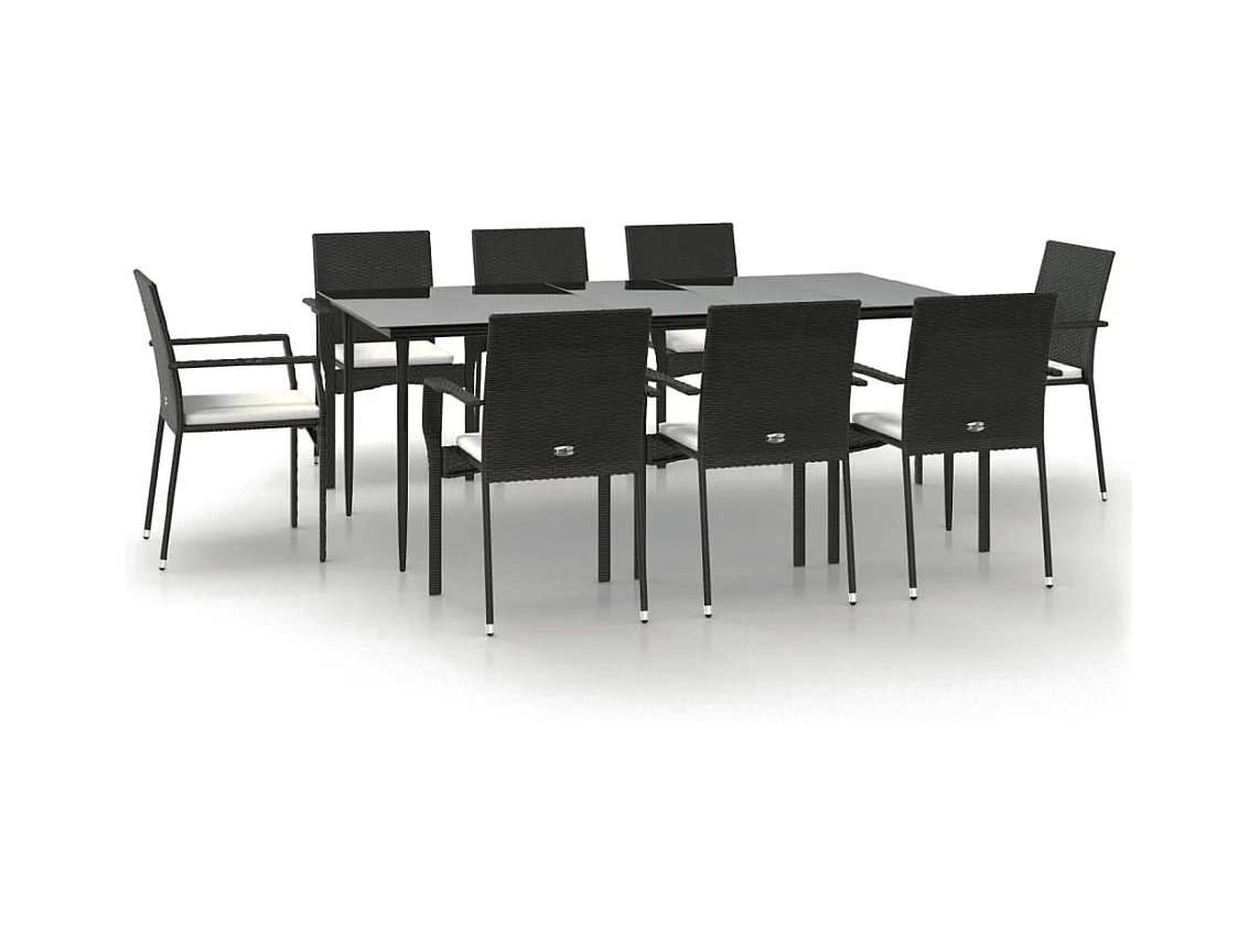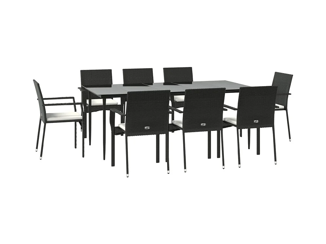 Conjunto de comedor de jardín de 9 piezas con cojines de mimbre negro 02_0014838