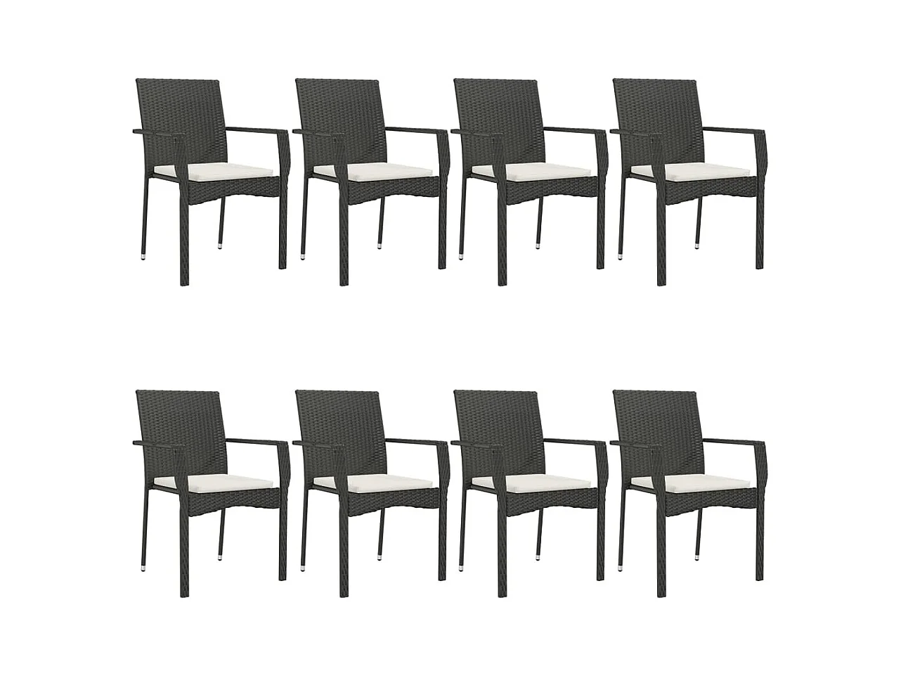Conjunto de comedor de jardín de 9 piezas con cojines de mimbre de resina negra 02_0014830