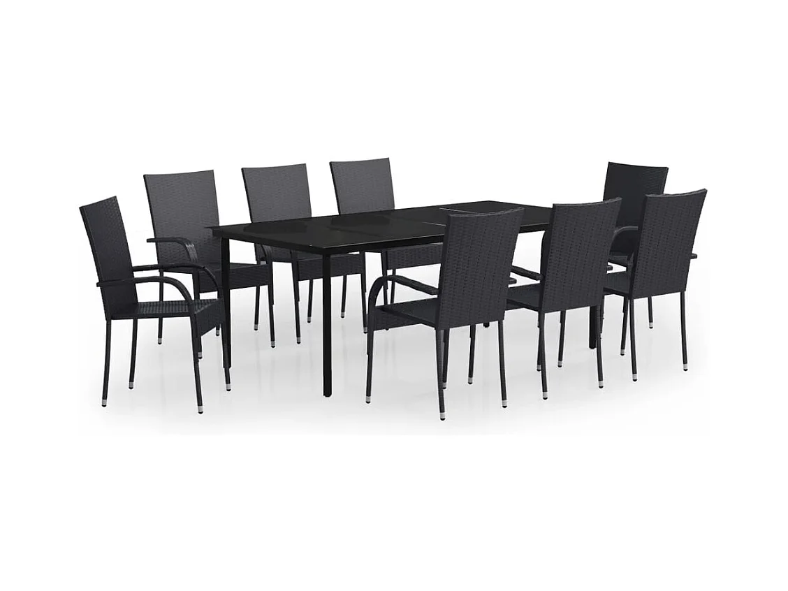 Juego de comedor de jardín muebles de exterior 9 piezas negro 02_0014111