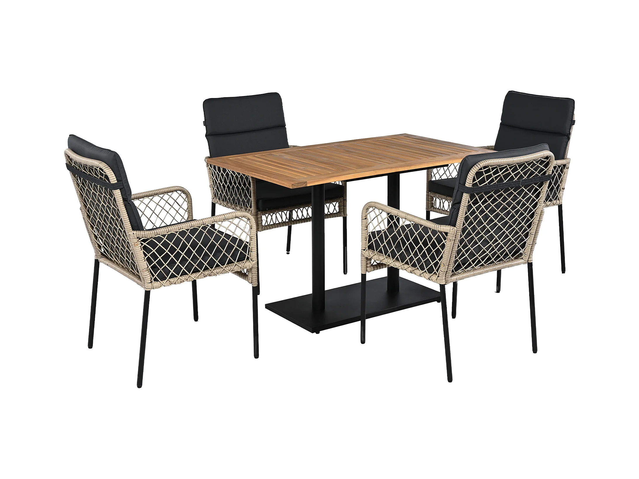 Conjunto de comedor de jardín para 4 personas, Madera maciza de acacia, estructura en hierro galvanizado, 4 sillas, 1 mesa, Negro