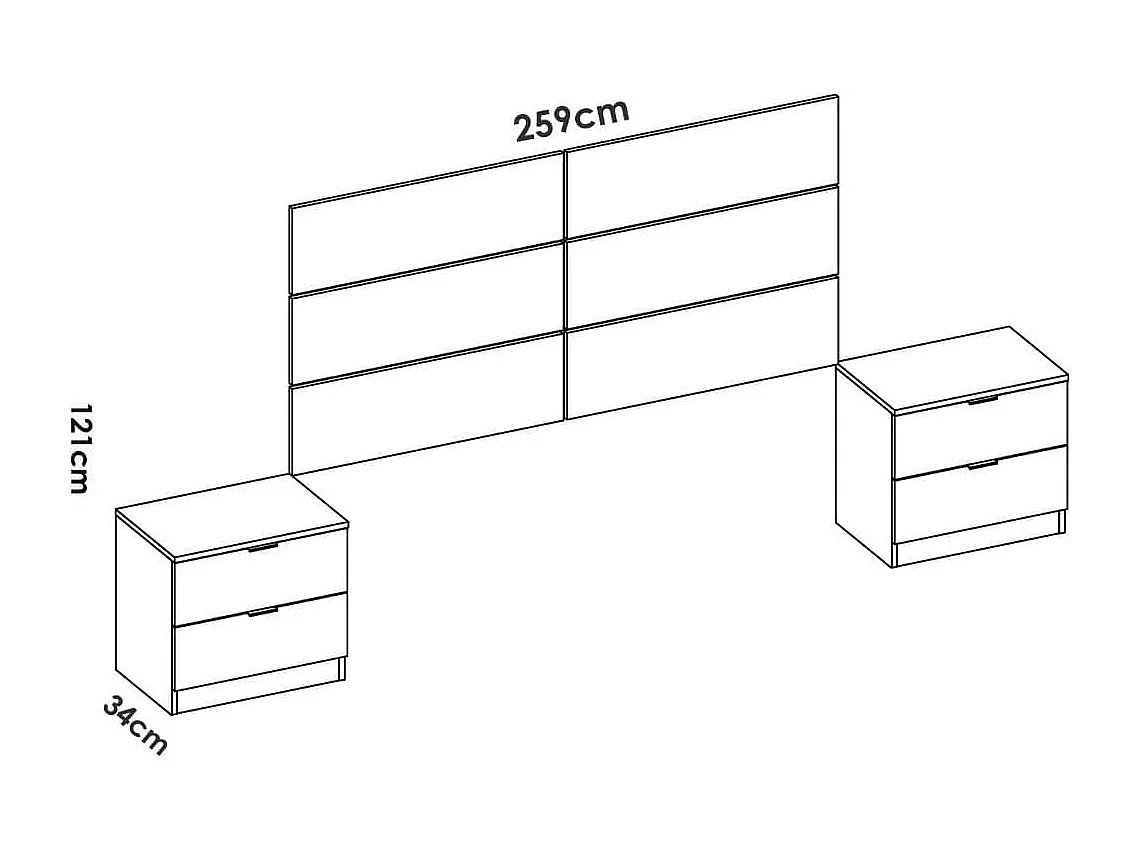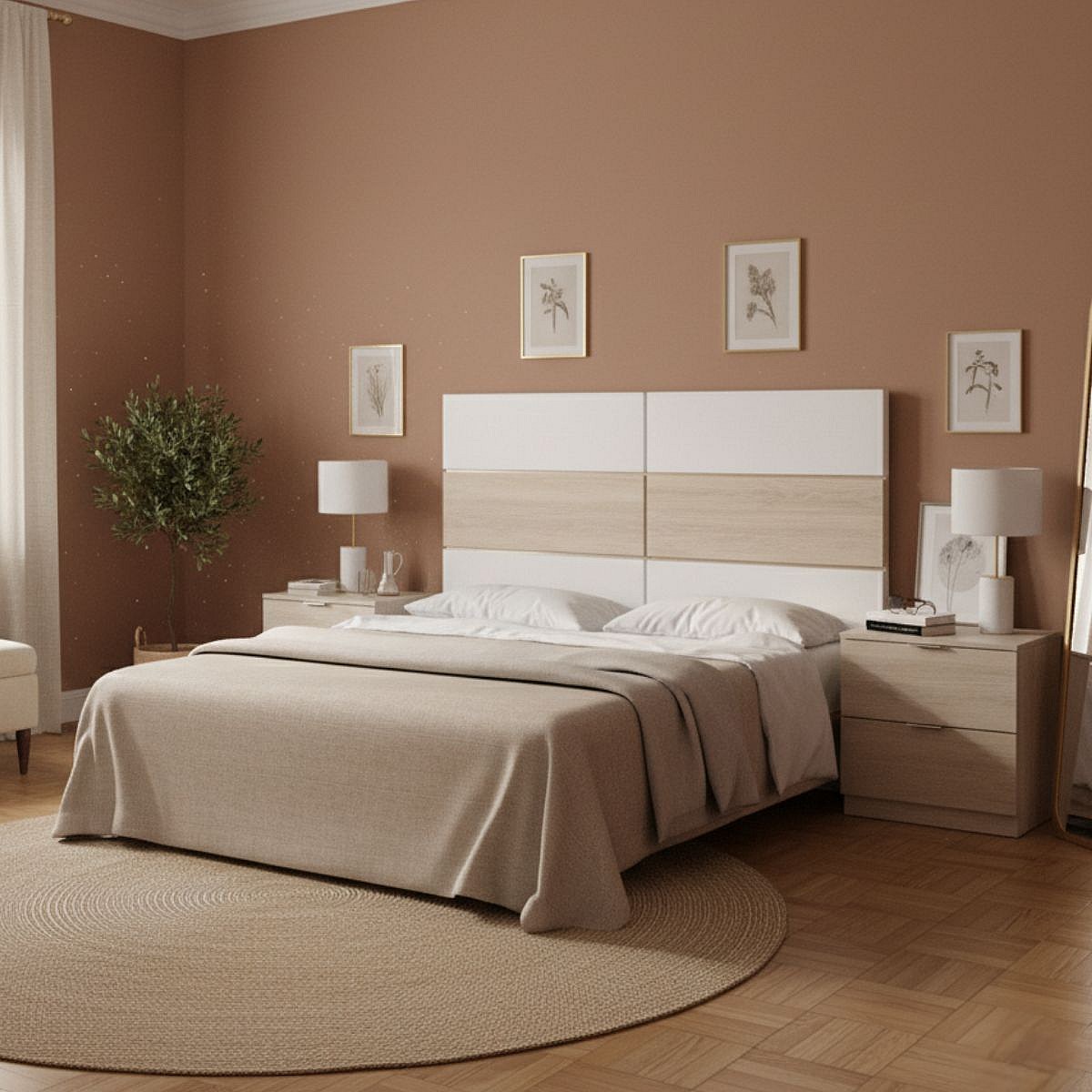 Conjunto de dormitorio Astra cabecero + 2 mesitas de noche blanco/natural