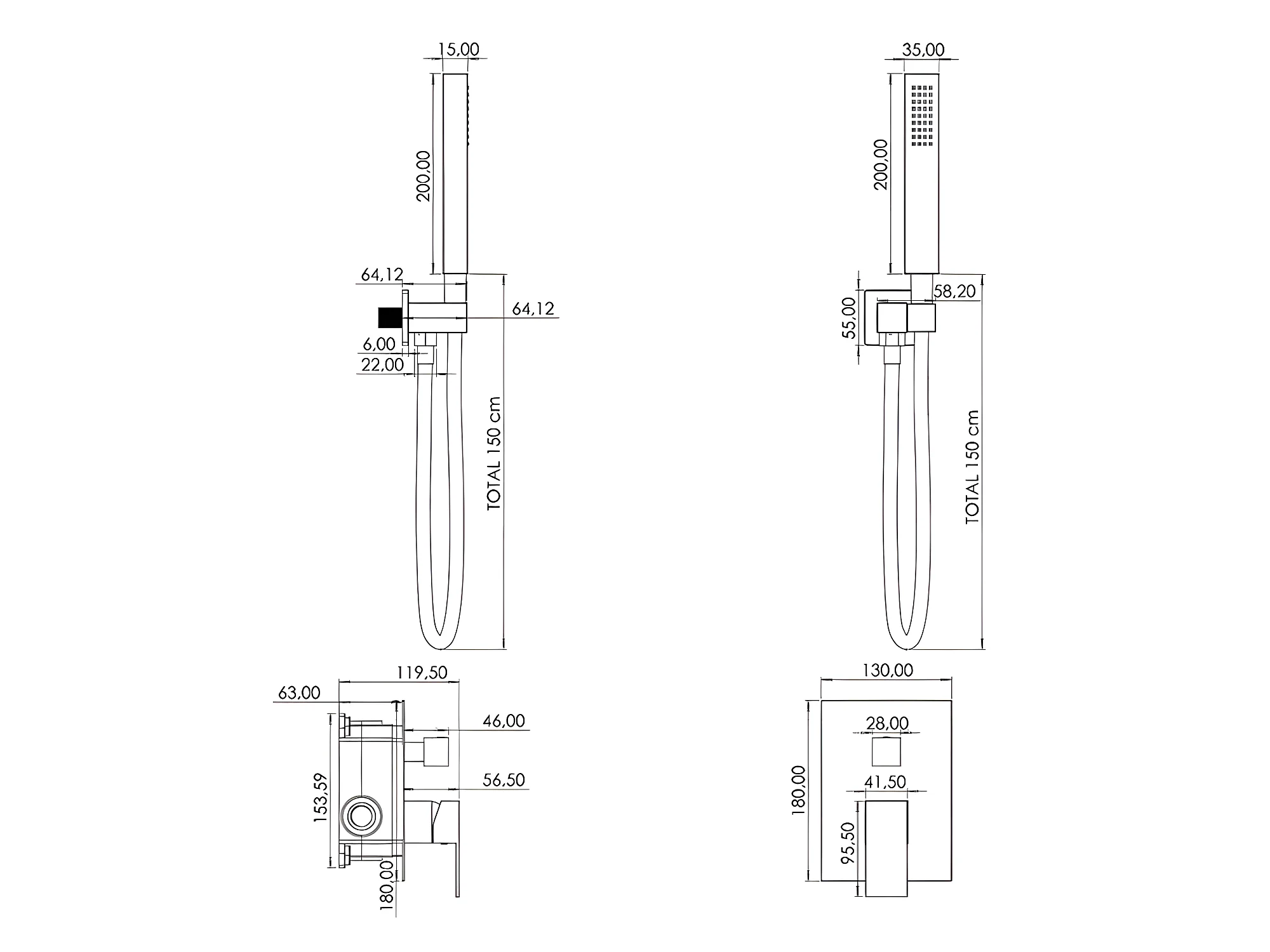 Conjunto de ducha empotrada pared monomando SLIGO negro mate 25 cm x 25 cm