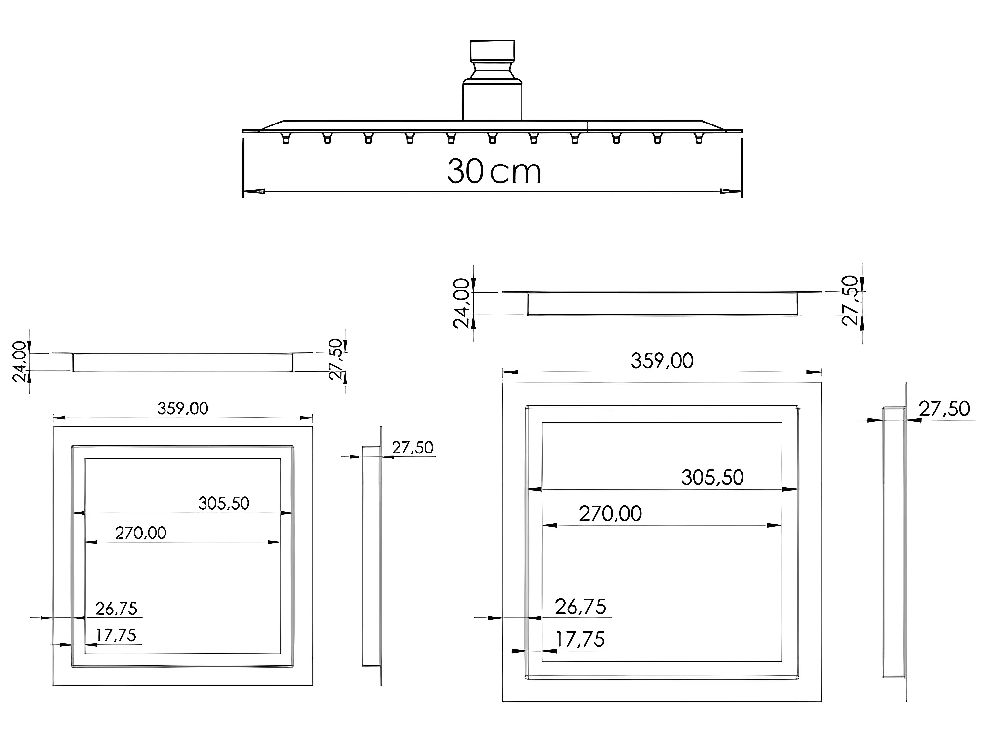 Conjunto de ducha empotrada a ras de techo ACTON negro mate