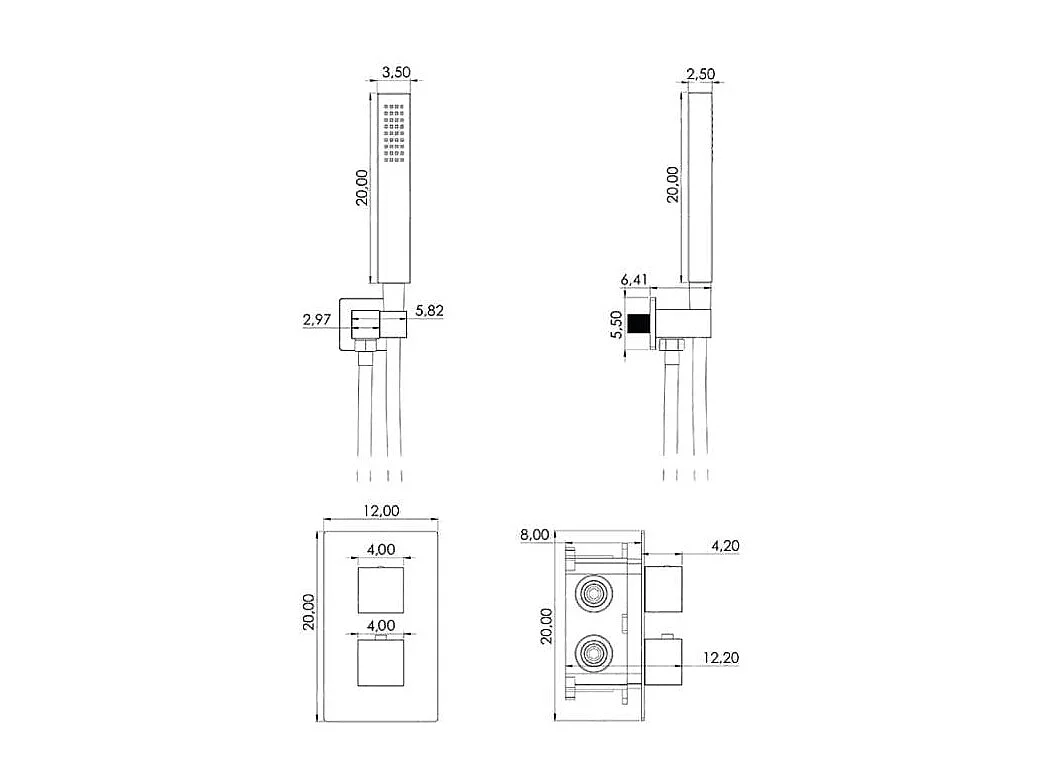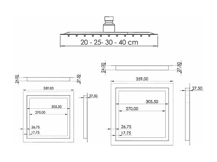 Conjunto de ducha empotrada a ras termostática a techo TILSO negro mate 30 cm x 30 cm