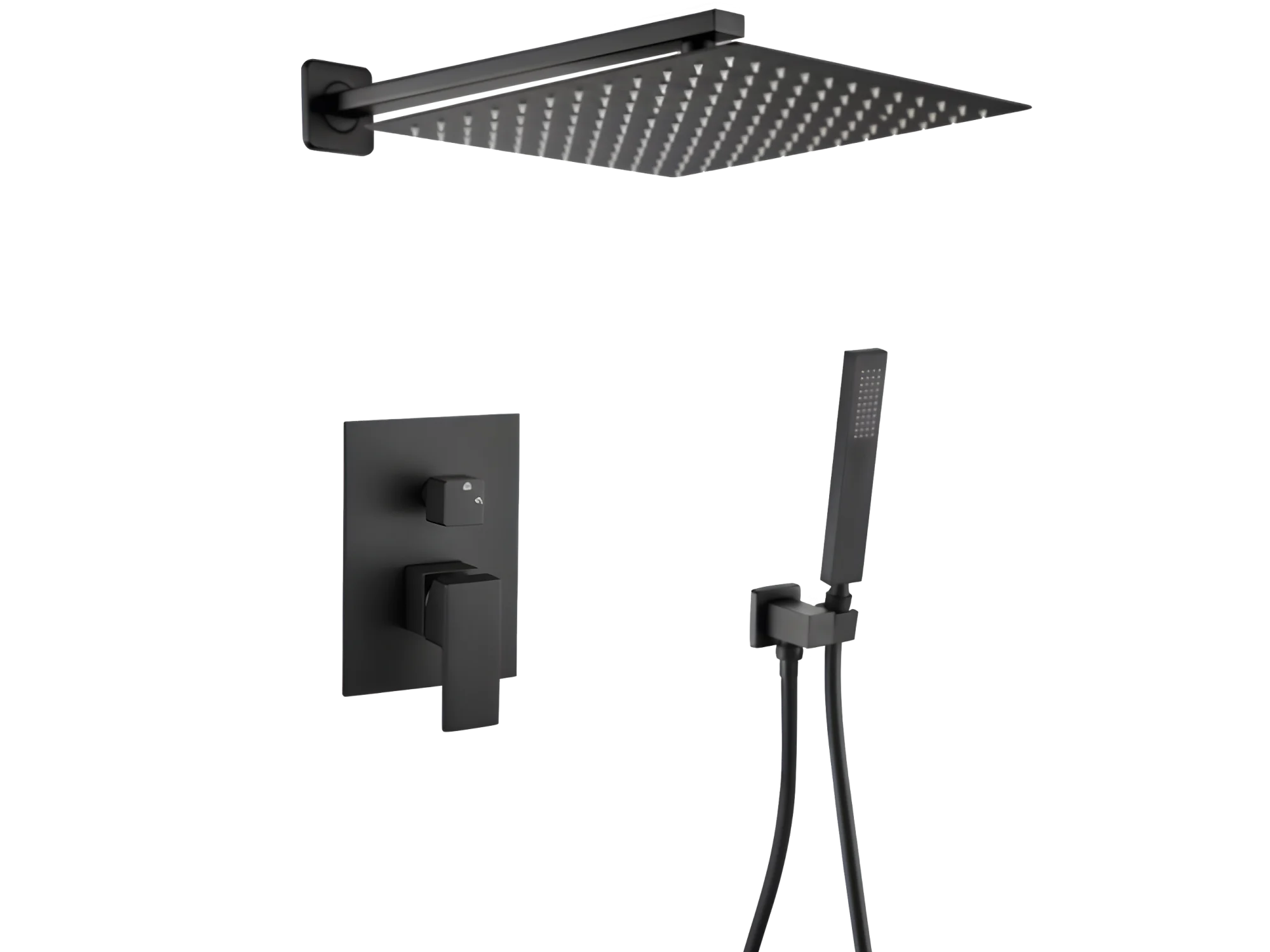 Conjunto de ducha empotrada monomando a pared TILSO negro mate 30 cm x 30 cm