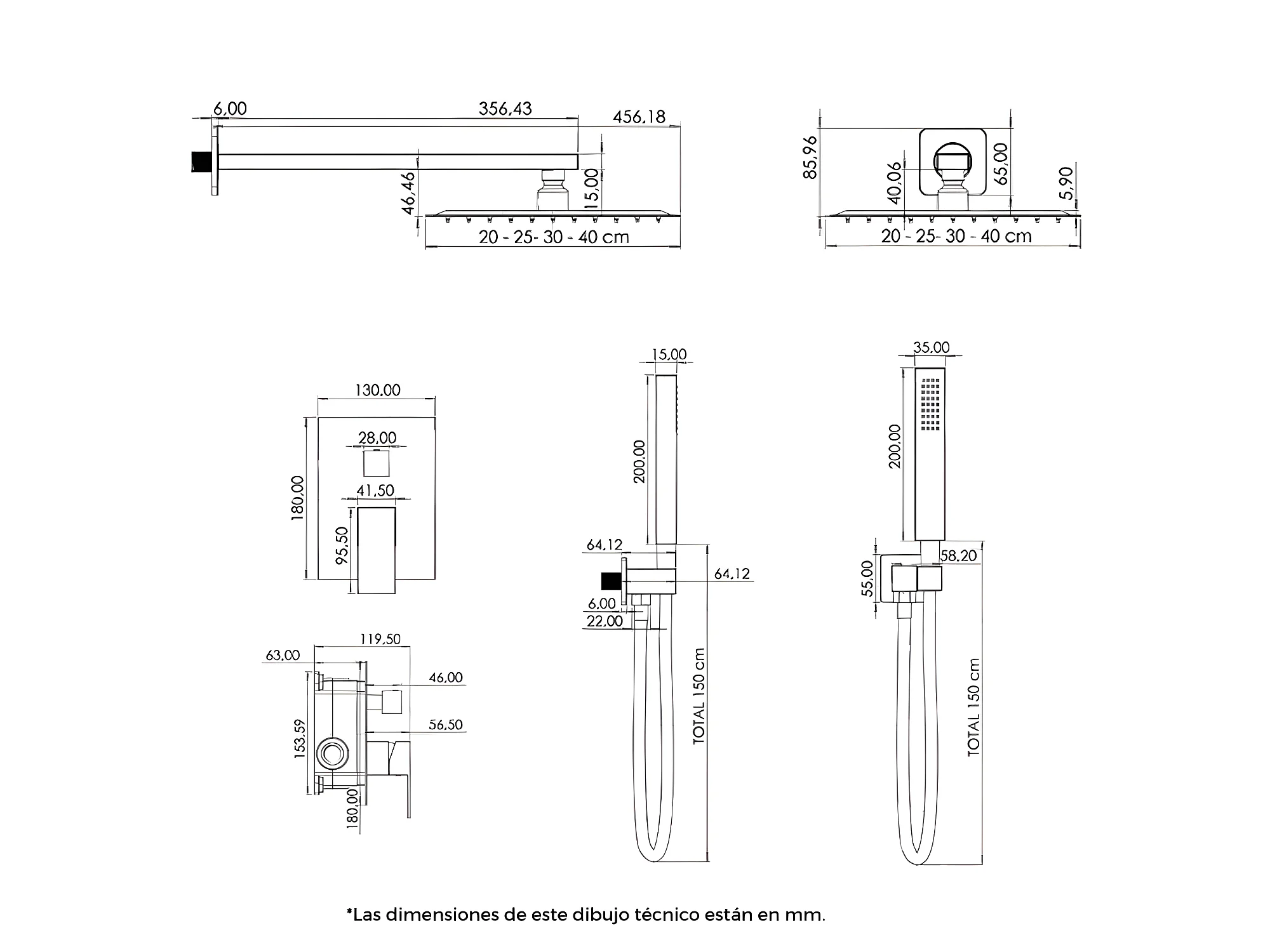 Conjunto de ducha empotrada monomando SLIGO cromado Ø 25cm
