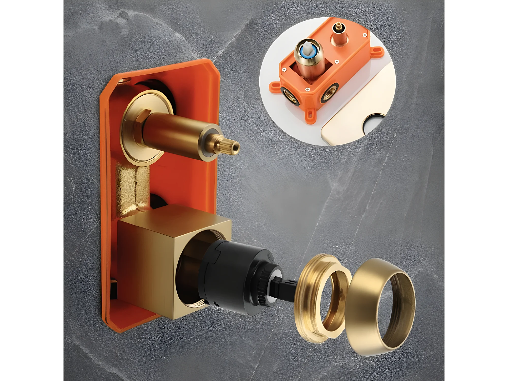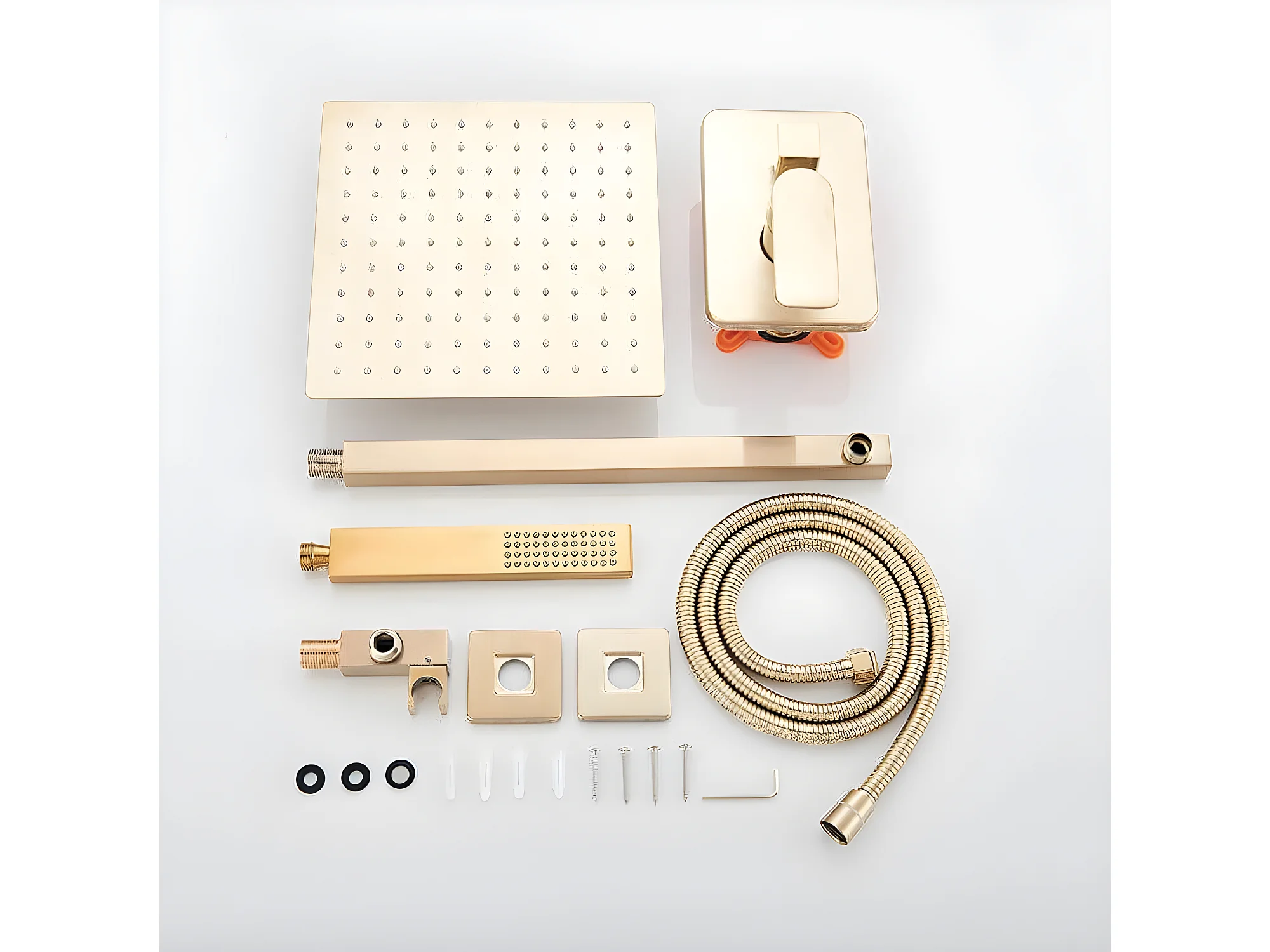 Conjunto de ducha empotrada monomando a pared TILSO oro cepillado 25 cm x 25 cm Dorado