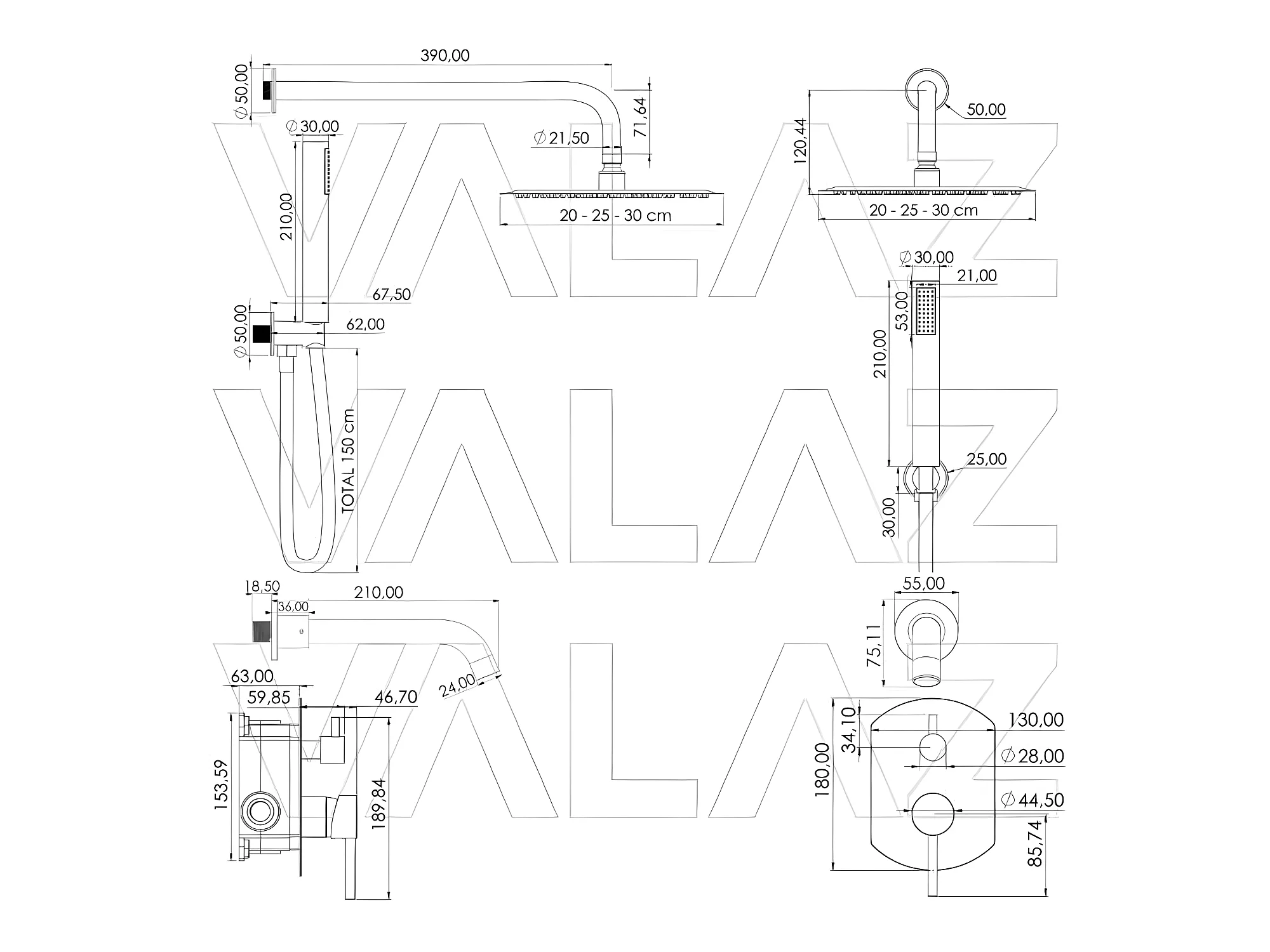 Conjunto de ducha empotrada monomando a pared FLORINA negra 20 cm x 20 cm Negro