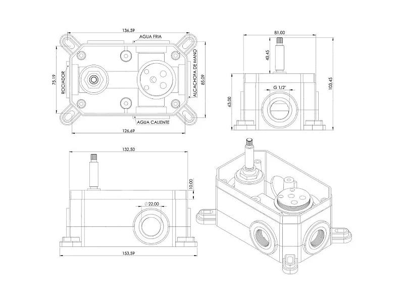 Ducha empotrada bimando redonda CARBINI cromada Ø 20cm Cromado