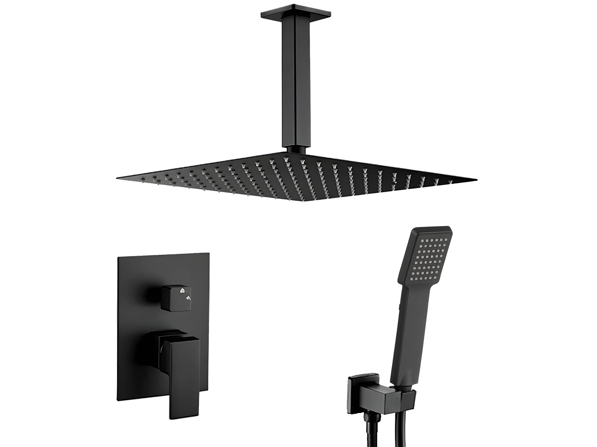 Conjunto de ducha monomando empotrada a techo MILTON negro mate 25 cm x 25 cm