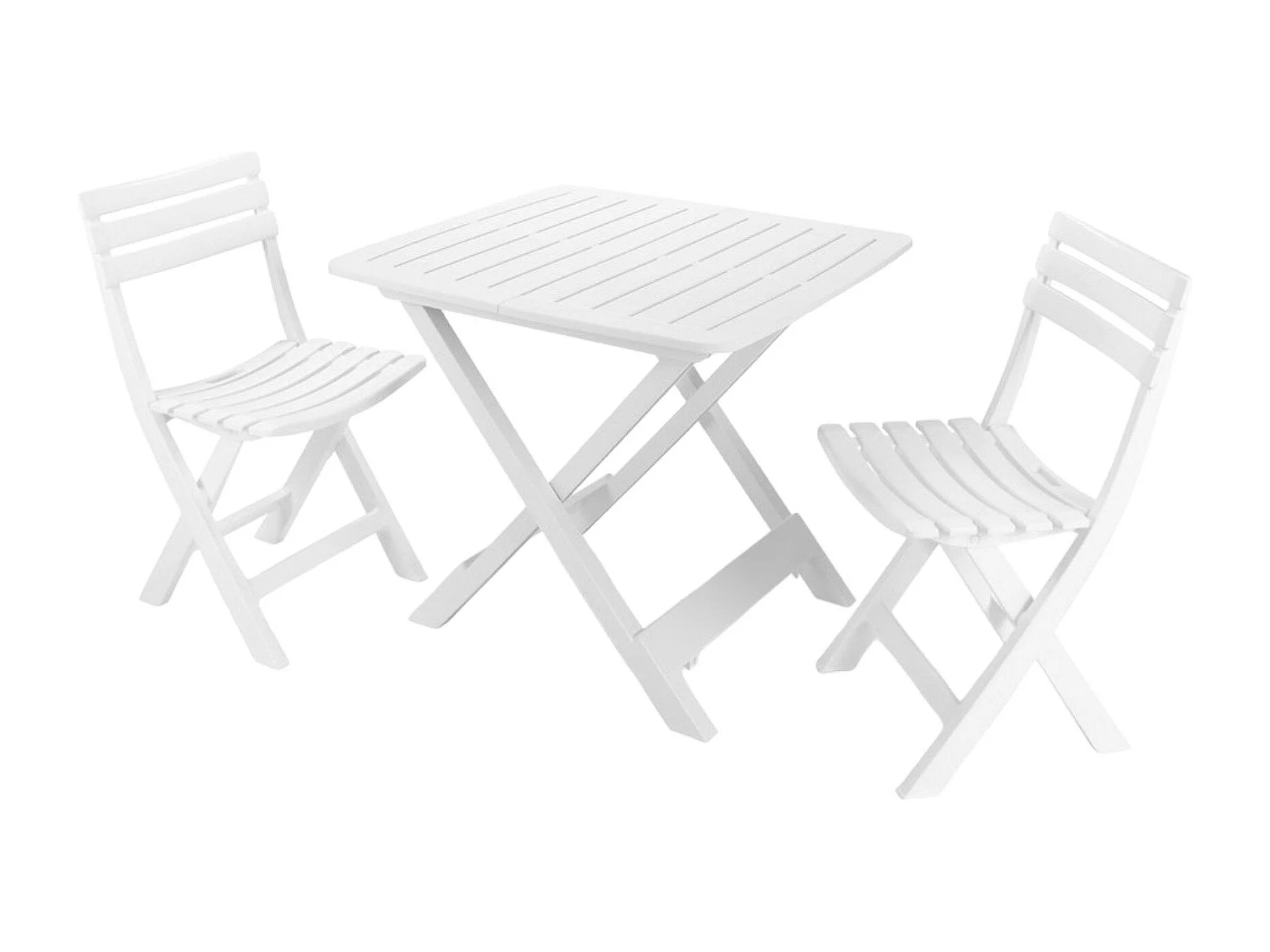 Conjunto de salón de exterior Paterno', Conjunto de jardín con 2 sillones y 1 mesa, Conjunto de camping, 100% Made in Italy, Blanco