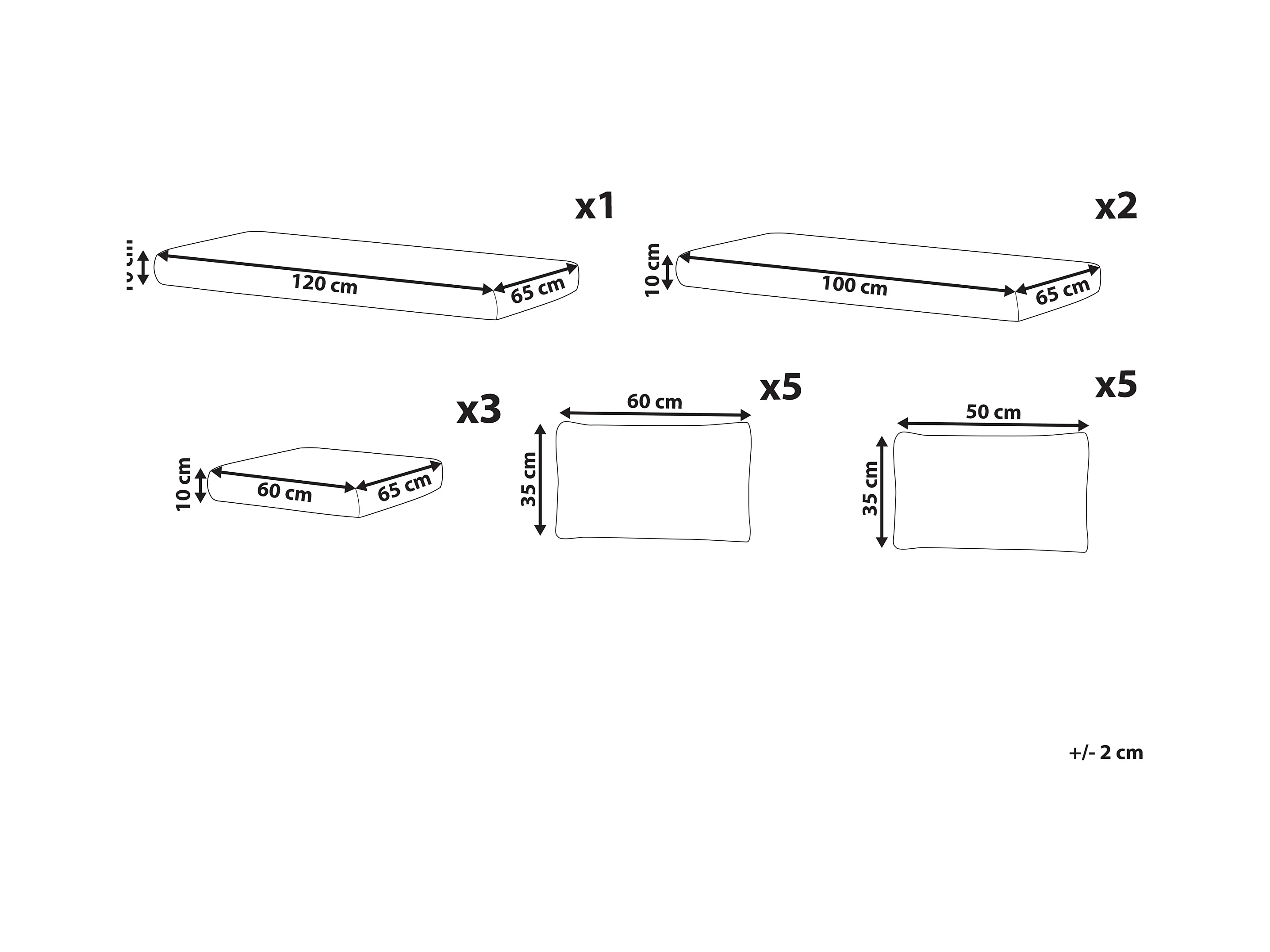 Conjunto de fundas de cojín de exterior XXL Blanco crema