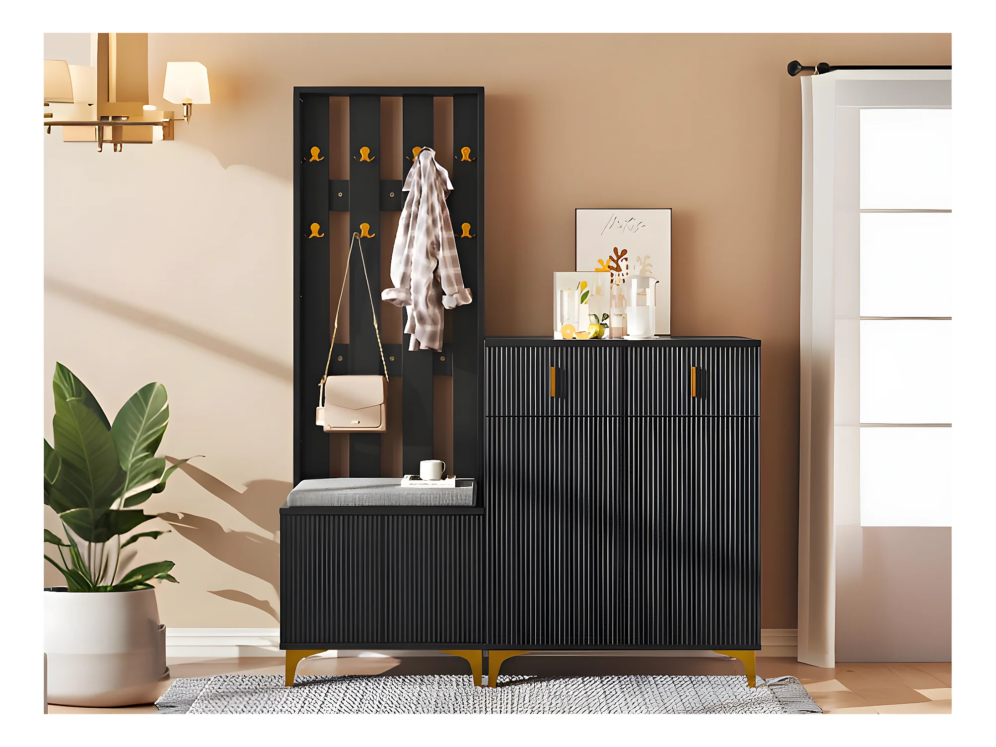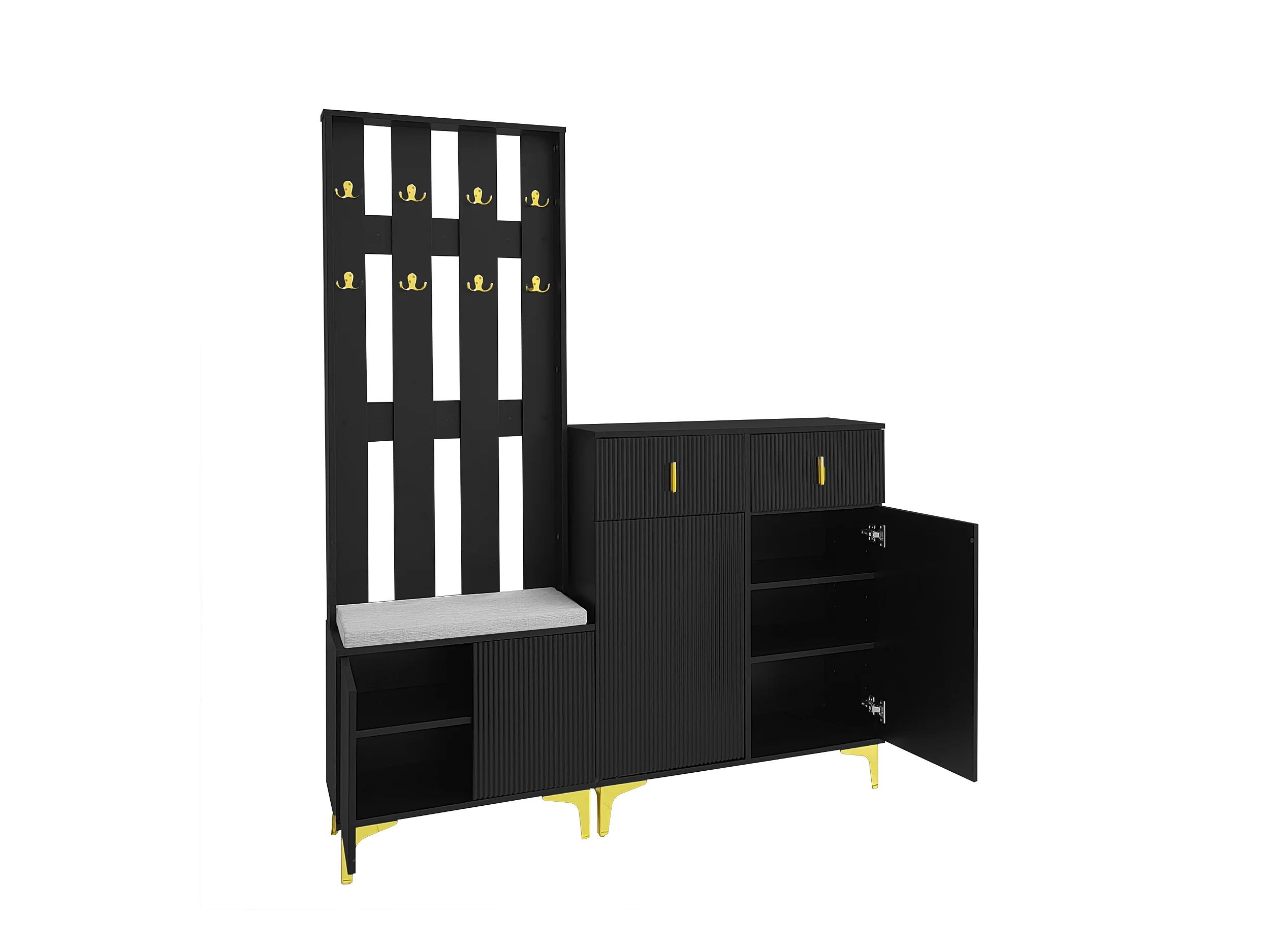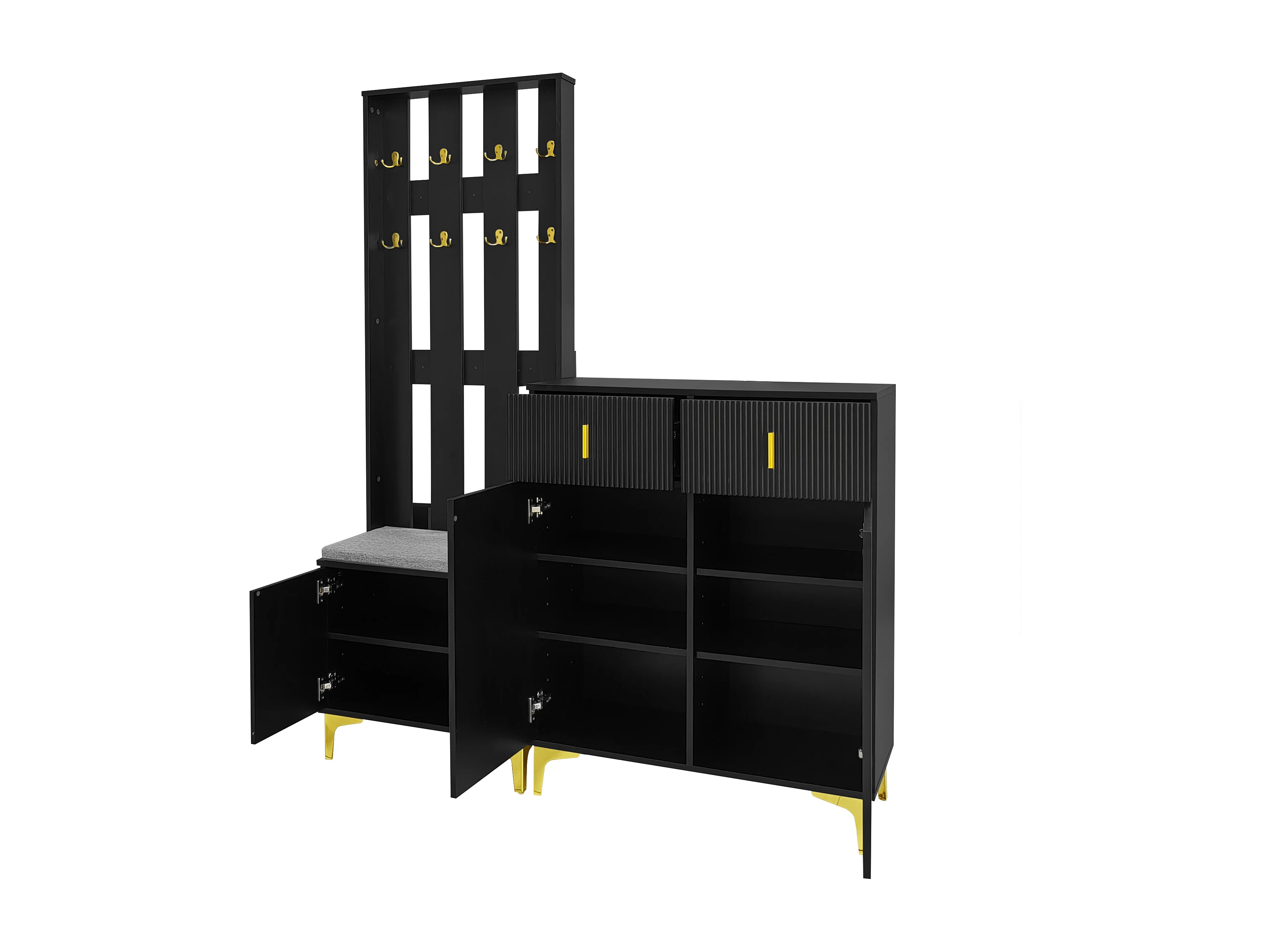 Conjunto de guardarropa - con ganchos, zapatero y taquilla - Negro