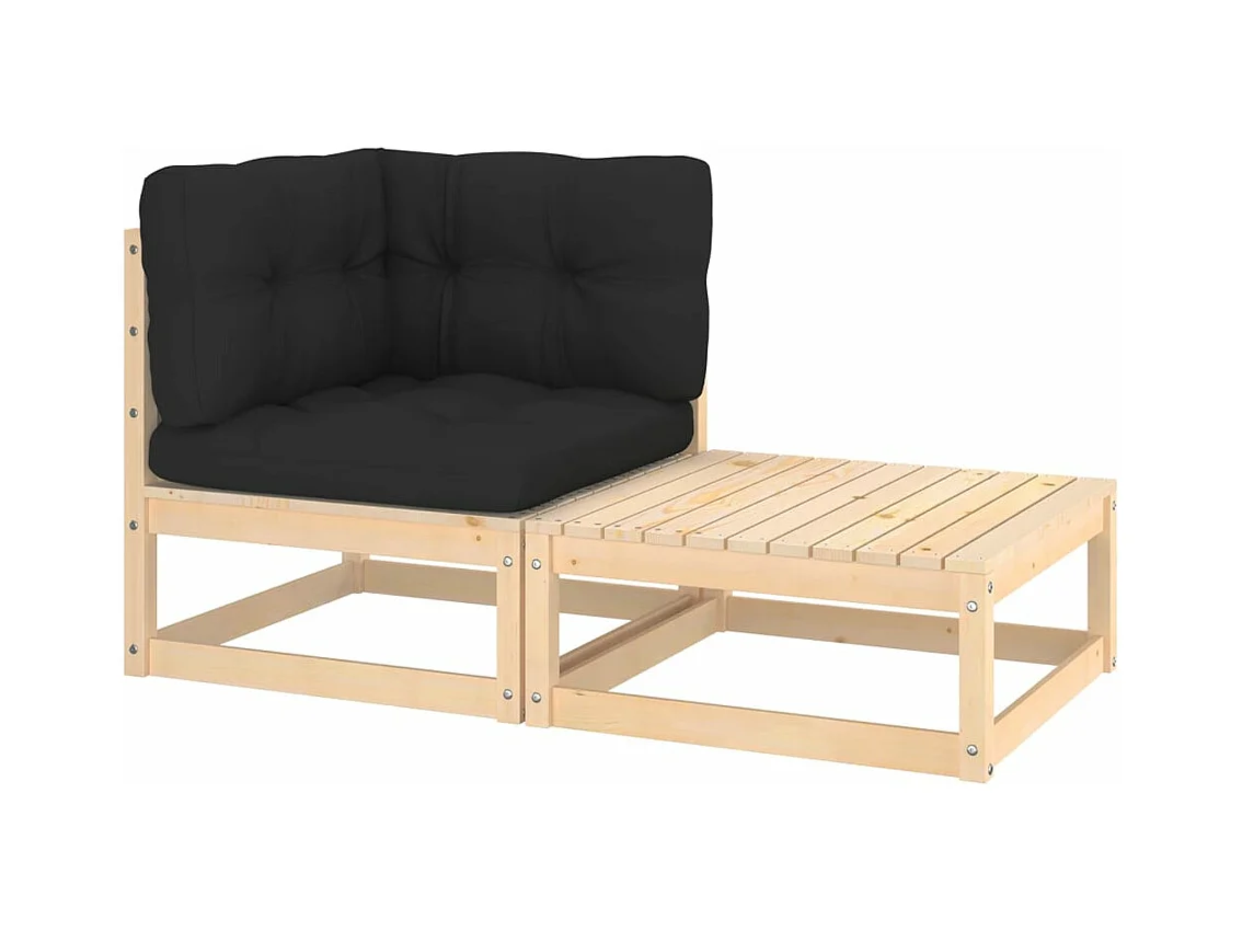 Conjunto de jardín 2 piezas con cojines madera maciza de pino ES227420