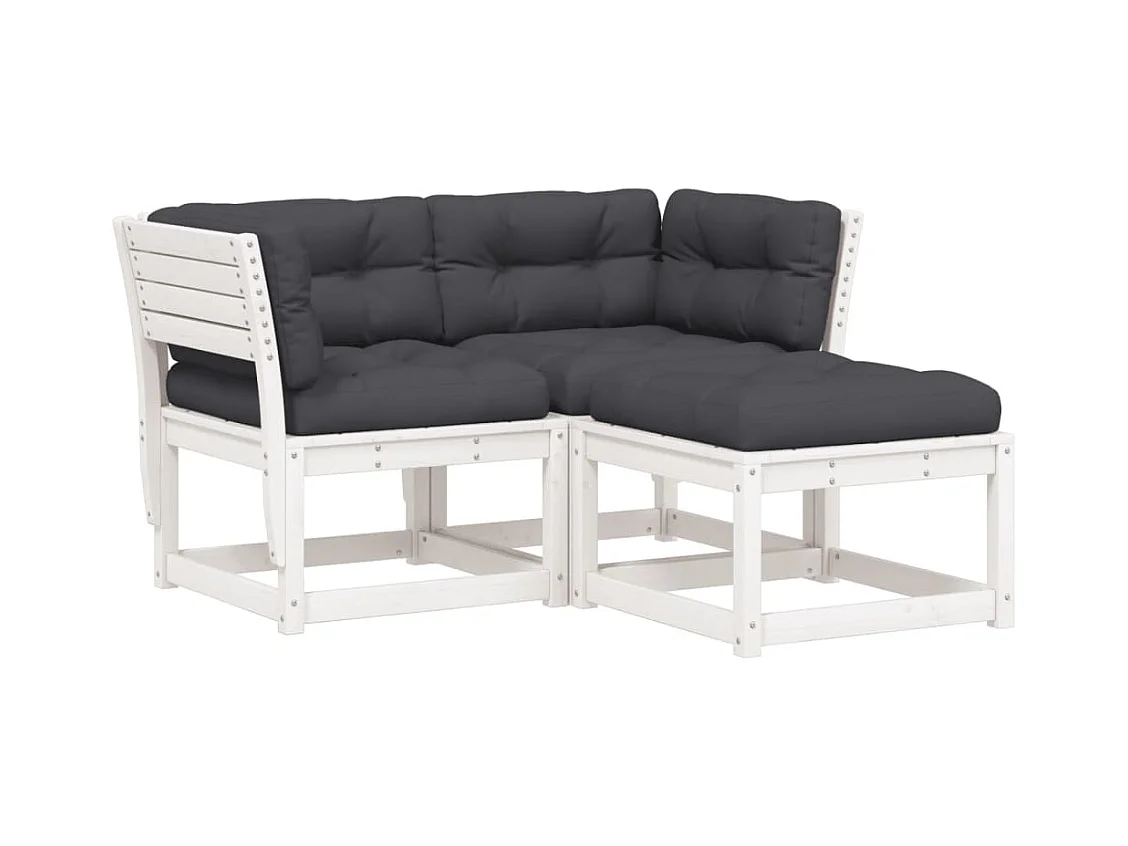 Set sofás jardín 3 pzas con cojines madera maciza pino blanco