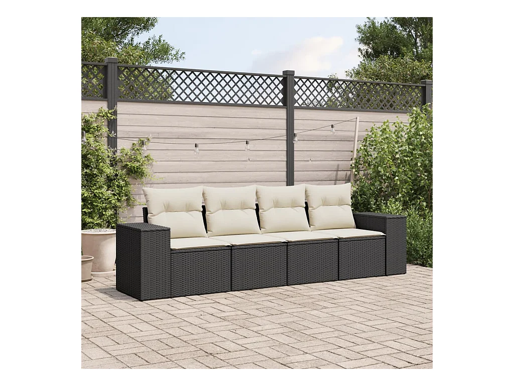Conjunto de jardín 4 pzas con cojines ratán sintético negro ES248650