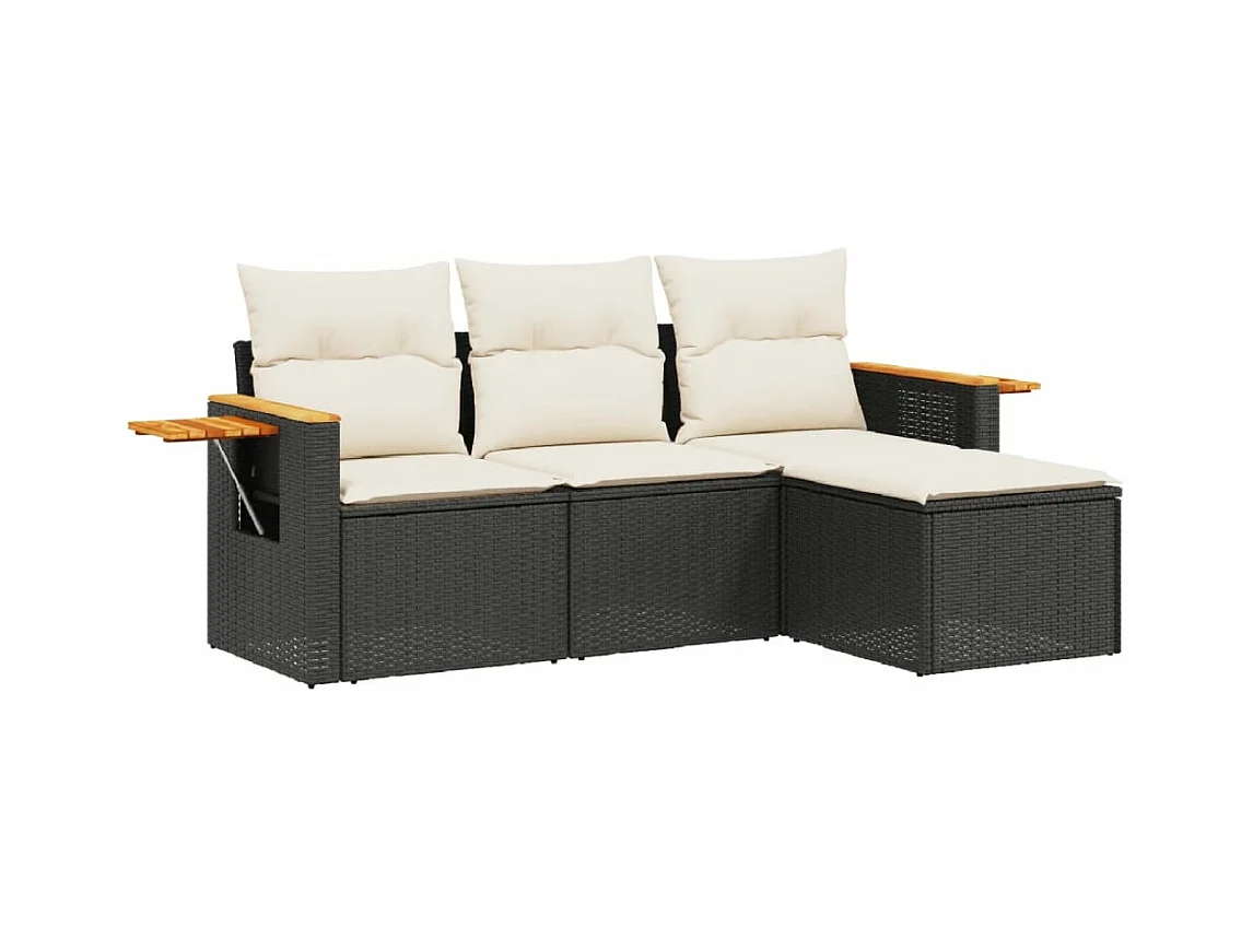 Conjunto de jardín 4 pzas con cojines ratán sintético negro ES248650