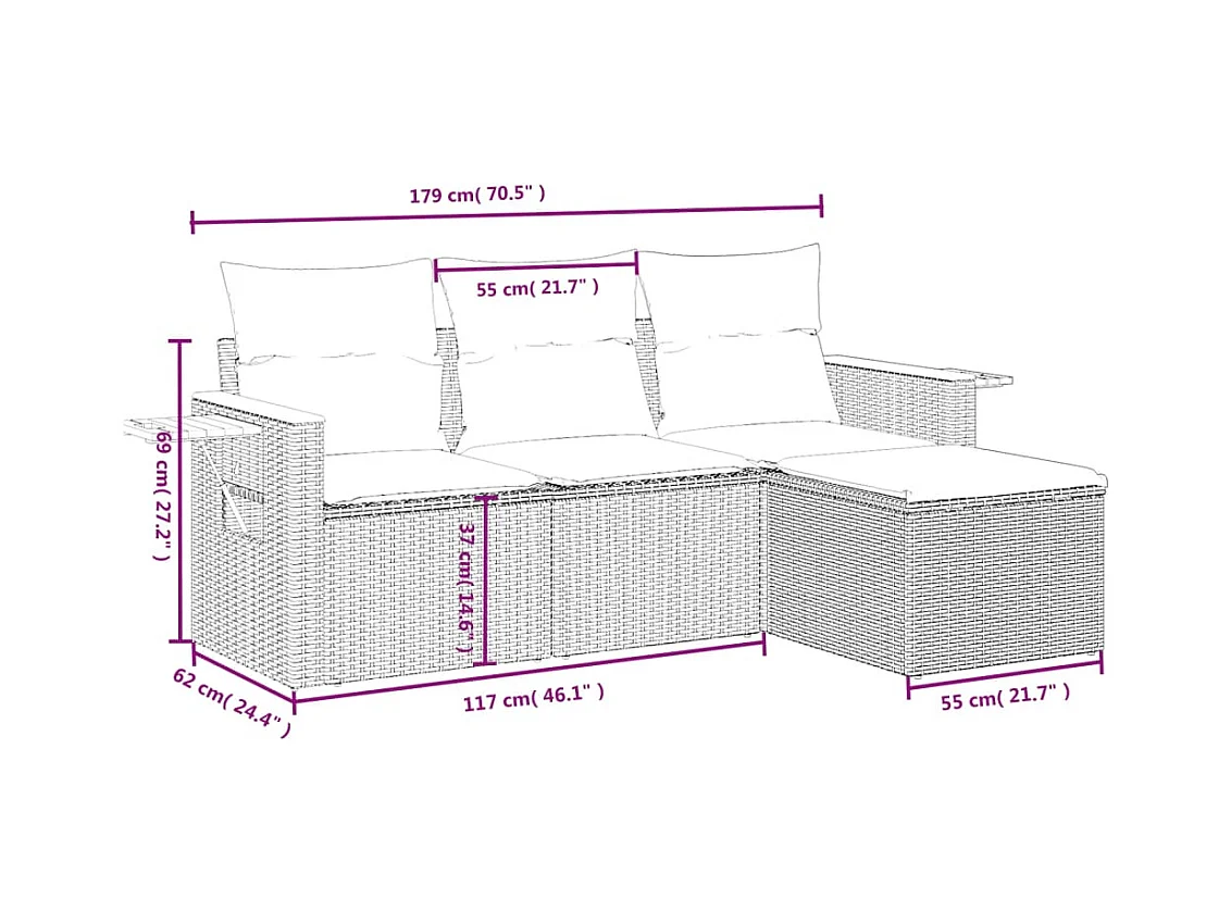 Conjunto de jardín 4 pzas con cojines ratán sintético negro ES478022