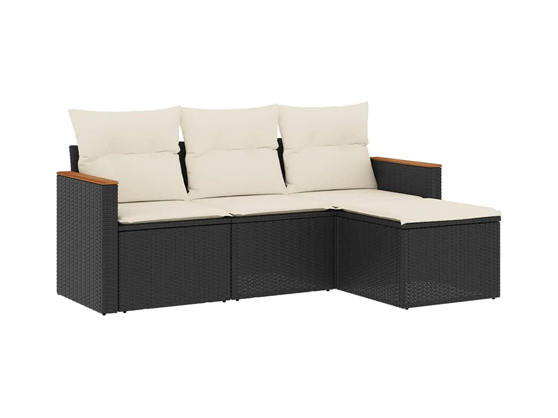 Conjunto de jardín 4 pzas con cojines ratán sintético negro ES750982