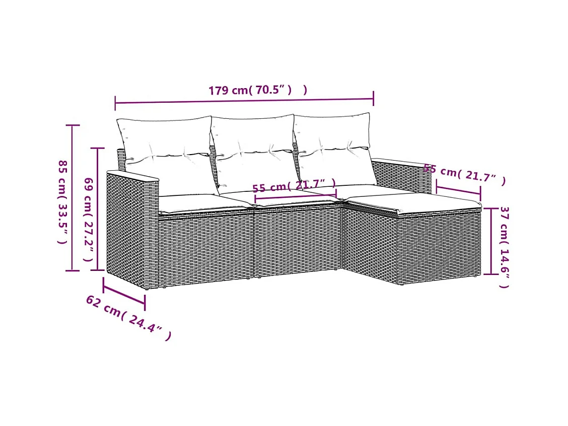 Conjunto de jardín 4 pzas con cojines ratán sintético negro ES248650