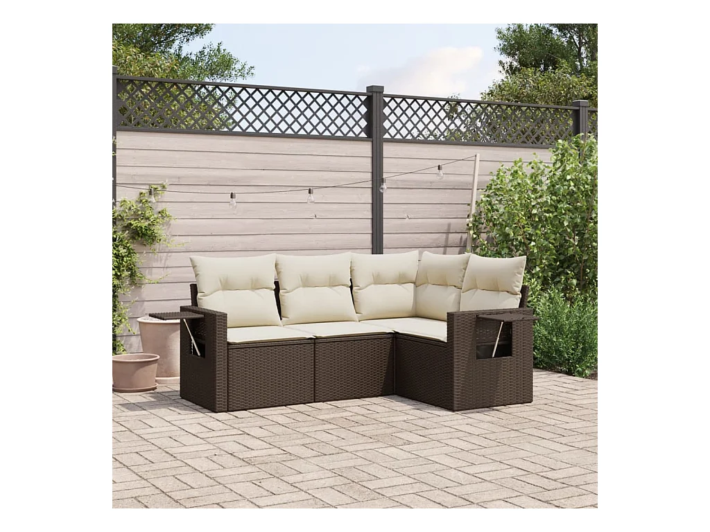 Conjunto de jardín 4 pzas y cojines ratán sintético marrón ES139702