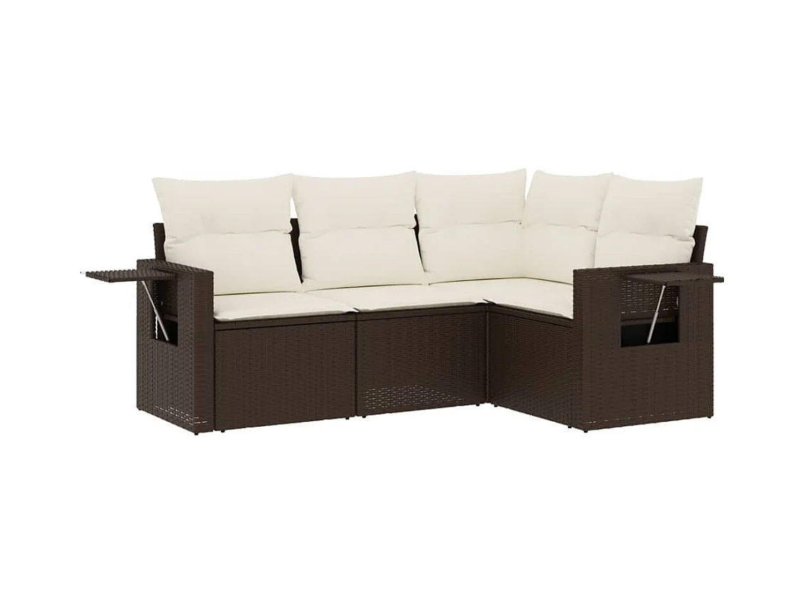 Conjunto de jardín 4 pzas y cojines ratán sintético marrón ES691022