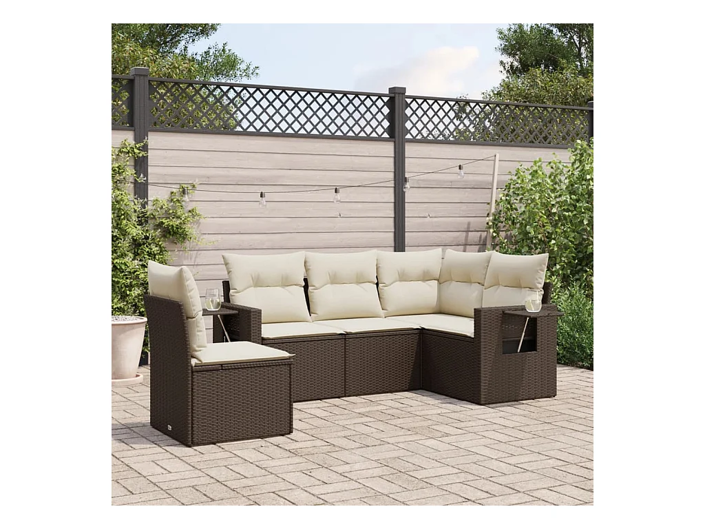 Conjunto de jardín 5 piezas y cojines ratán sintético marrón ES283244