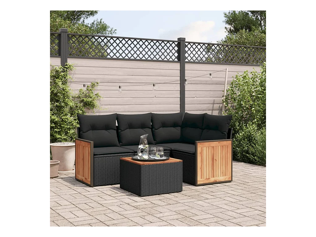 Conjunto de jardín 5 pzas y cojines ratán sintético negro ES519157