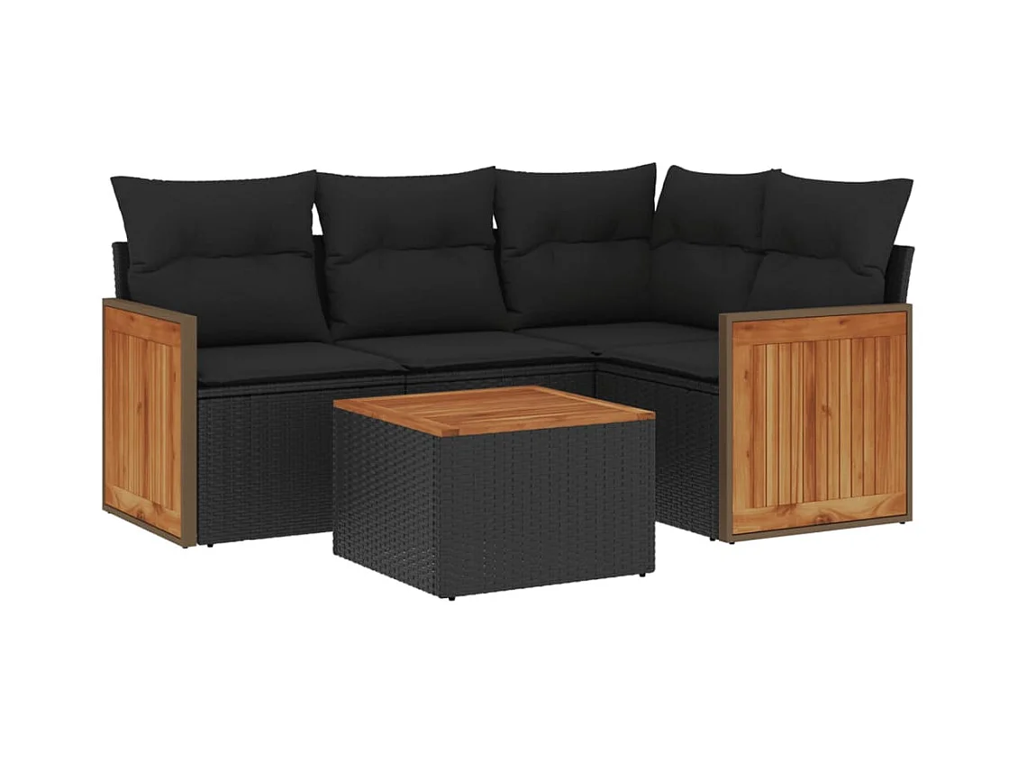 Conjunto de jardín 5 pzas y cojines ratán sintético negro ES214935
