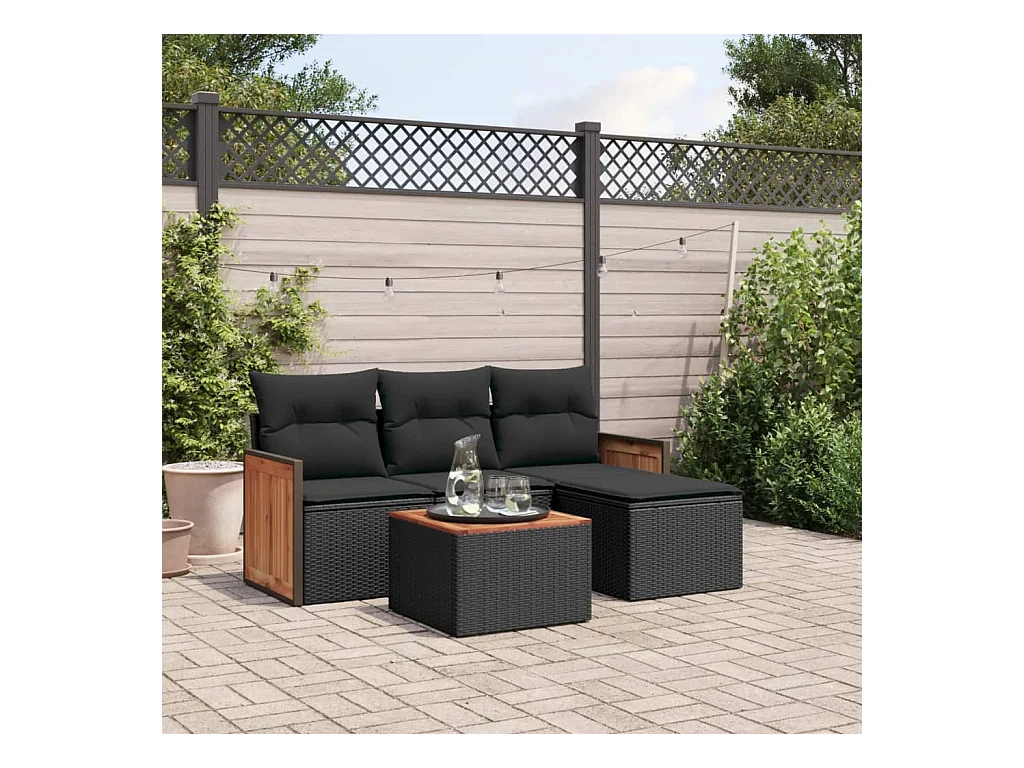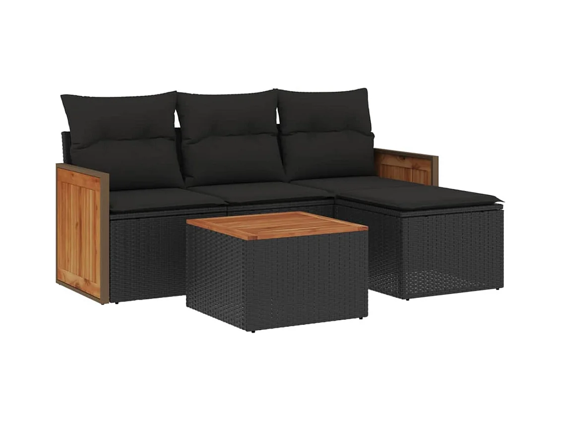 Conjunto de jardín 5 pzas y cojines ratán sintético negro ES433094