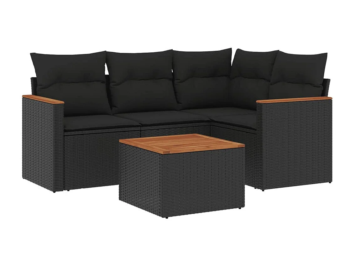 Conjunto de jardín 5 pzas y cojines ratán sintético negro ES813192