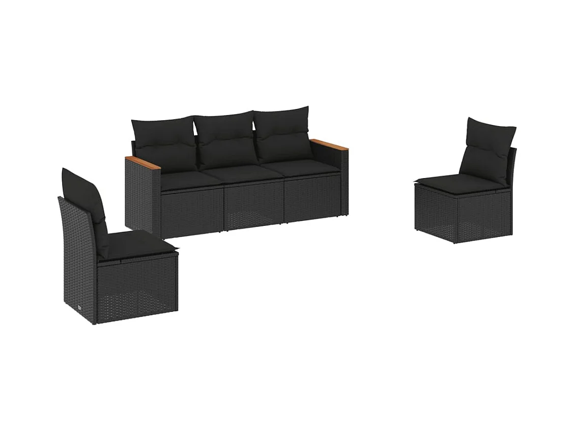 Conjunto de jardín 5 pzas y cojines ratán sintético negro ES807171