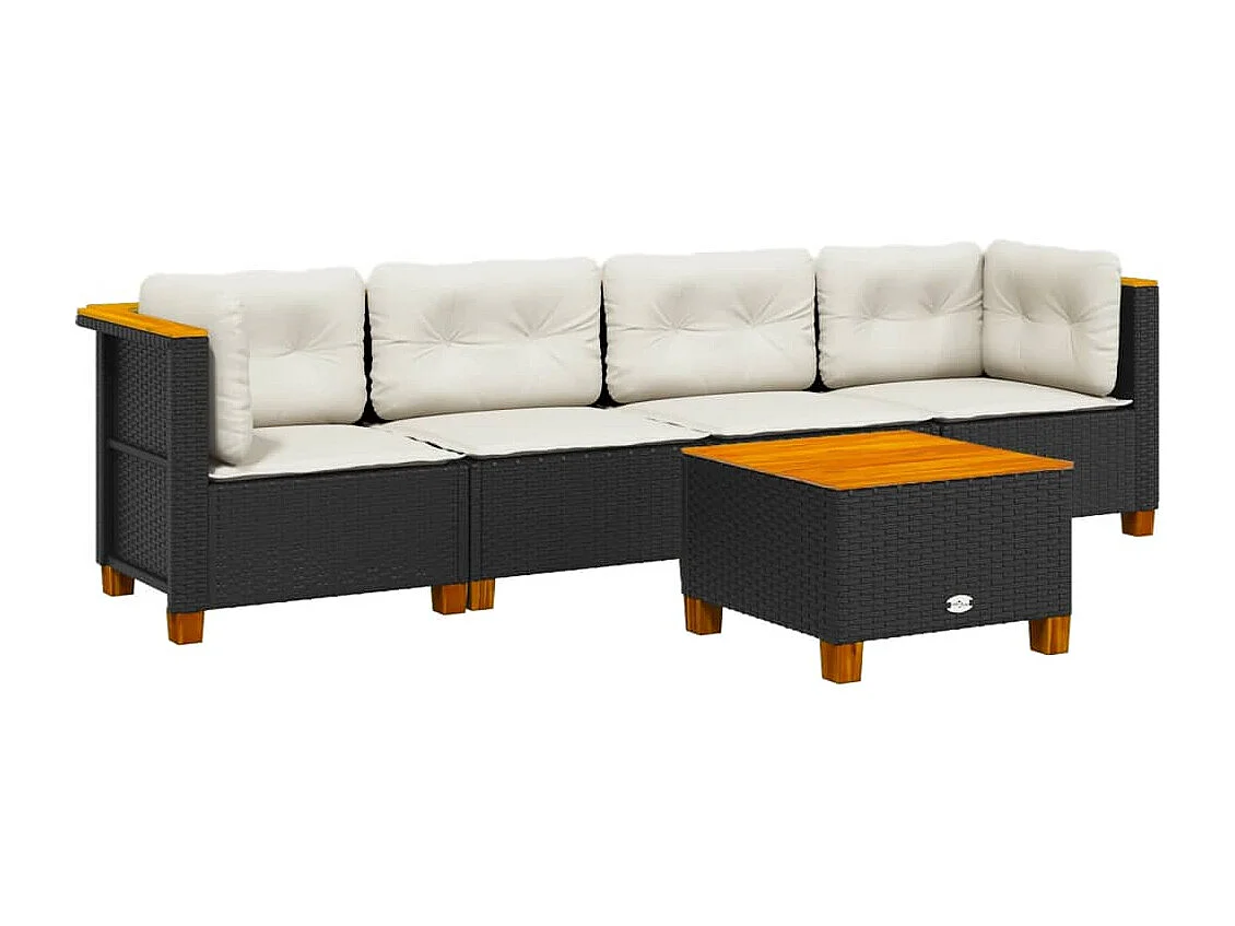 Conjunto de jardín 5 pzas y cojines ratán sintético negro ES848849