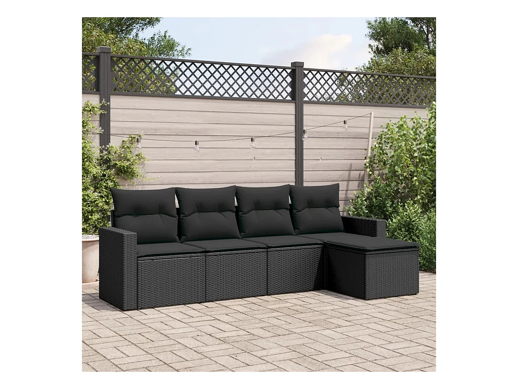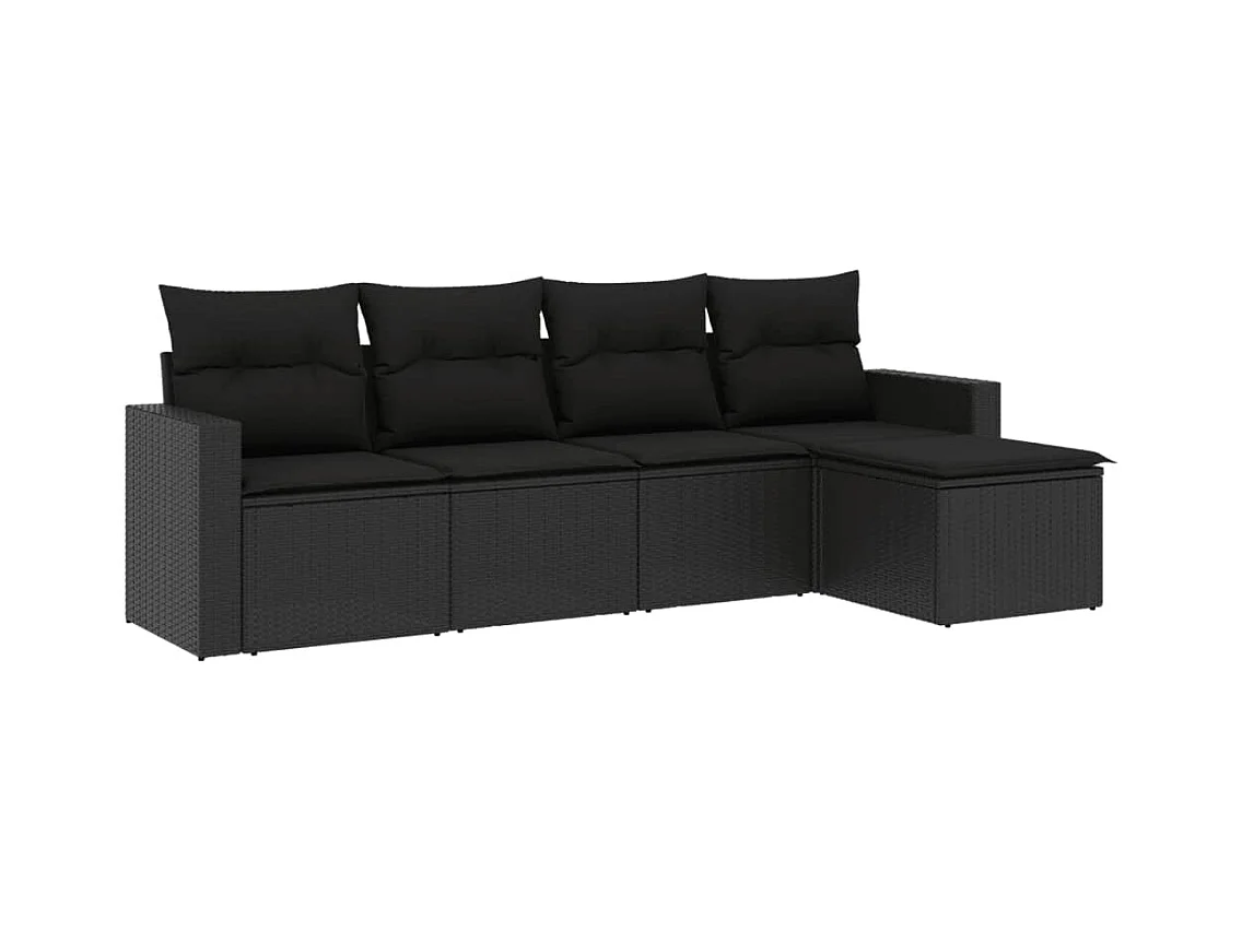 Conjunto de jardín 5 pzas y cojines ratán sintético negro ES883200