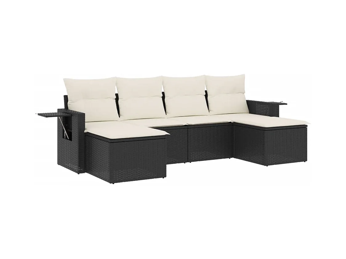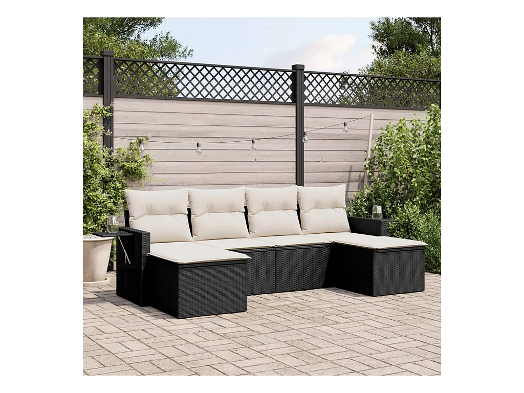 Set de sofás de jardín 6 piezas y cojines ratán sintético negro