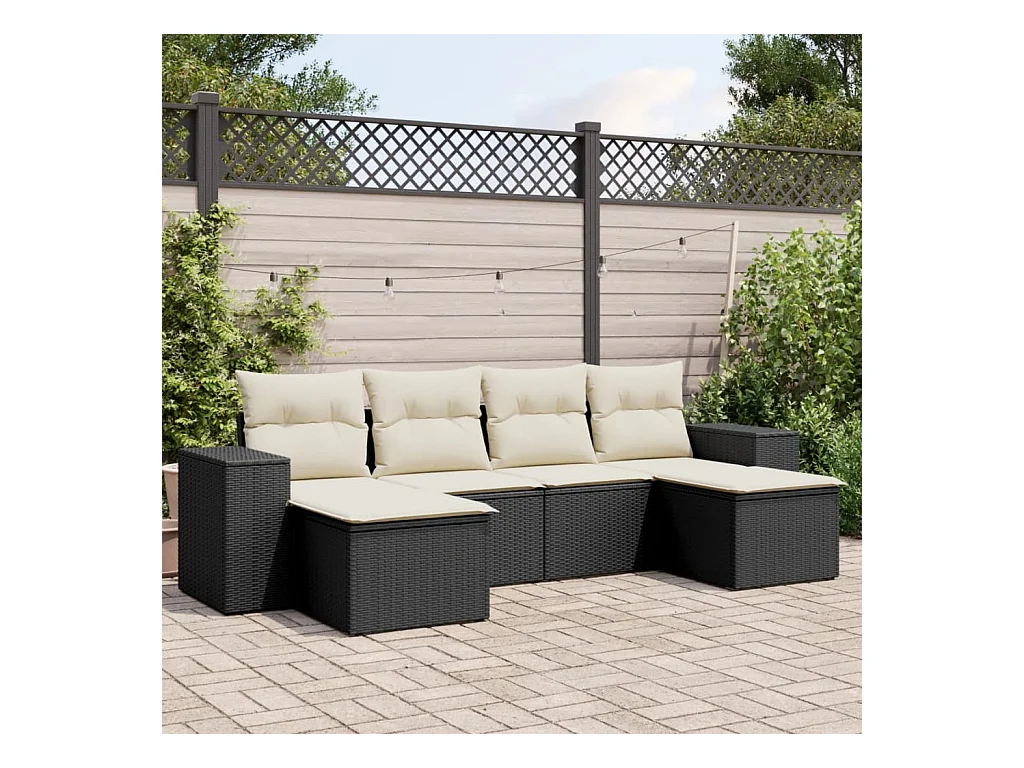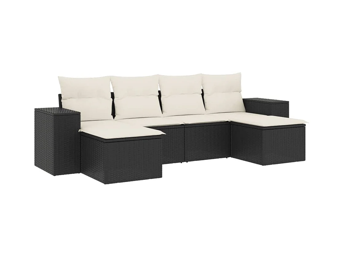 Set de sofás de jardín 6 piezas y cojines ratán sintético negro