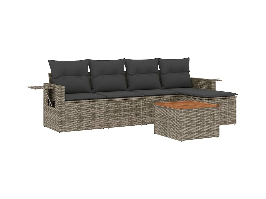 Conjunto de jardín 6 pzas y cojines ratán sintético gris ES804880